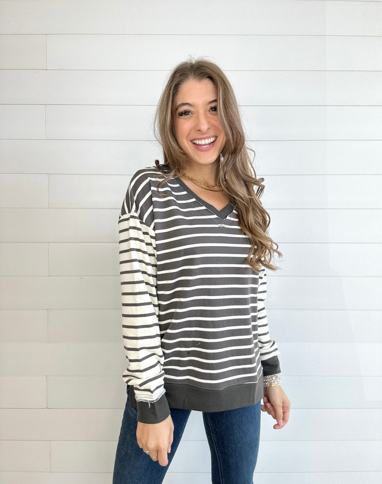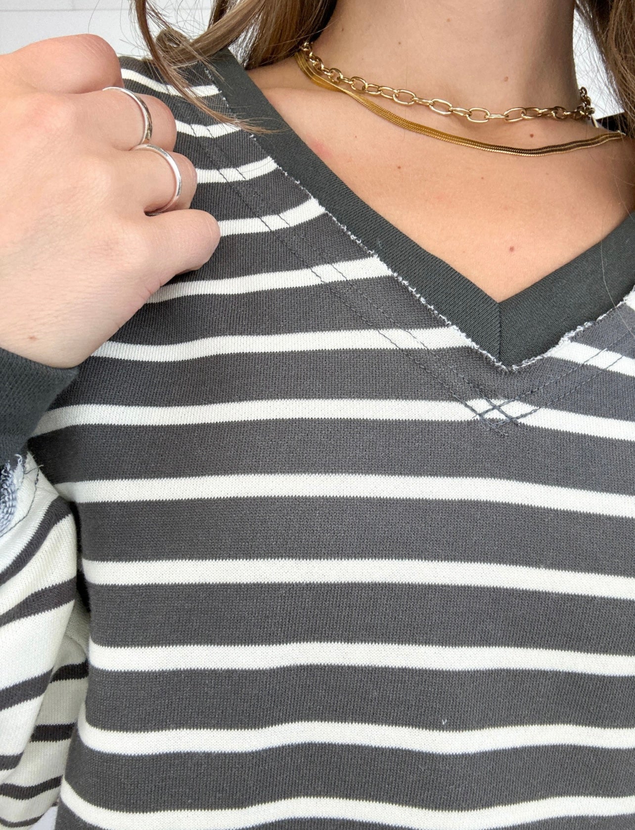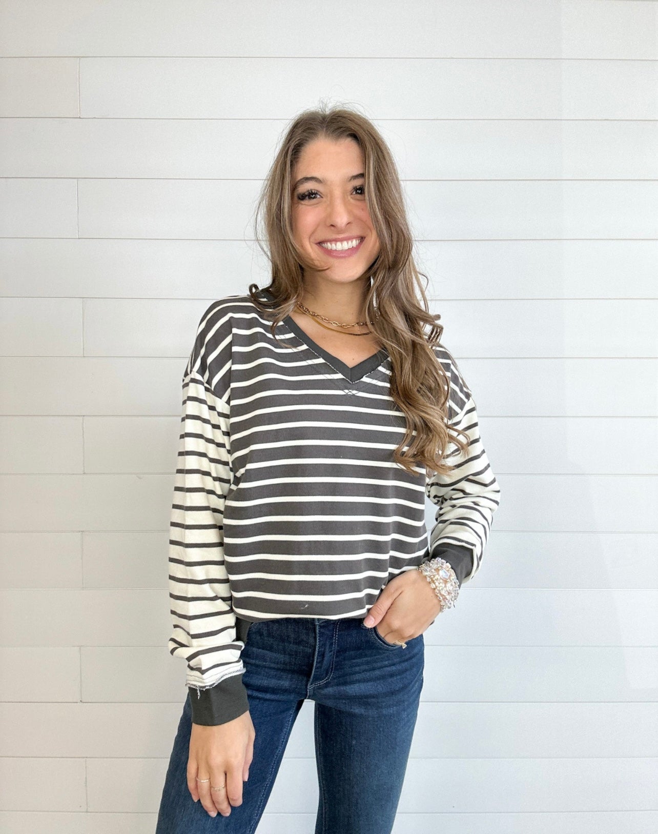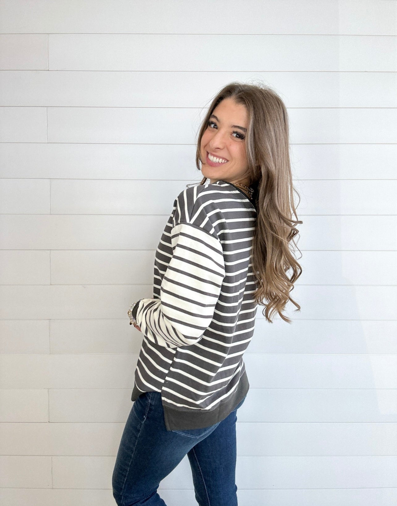 Vibe: Sporty yet chic — a versatile stripe top that works for layering or solo wear.