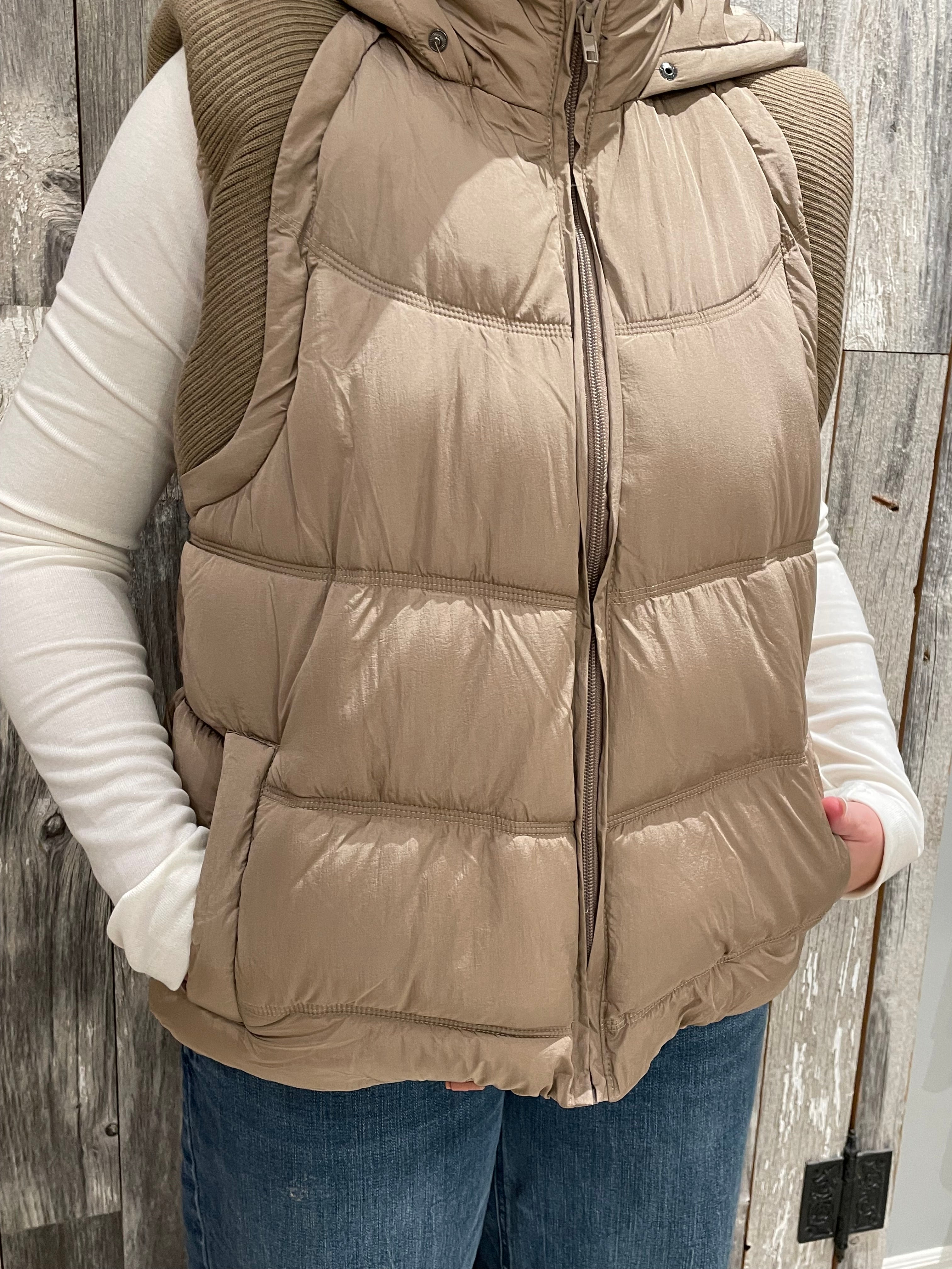 Sweater Rib Detail Nylon Hooded Puffer Vest