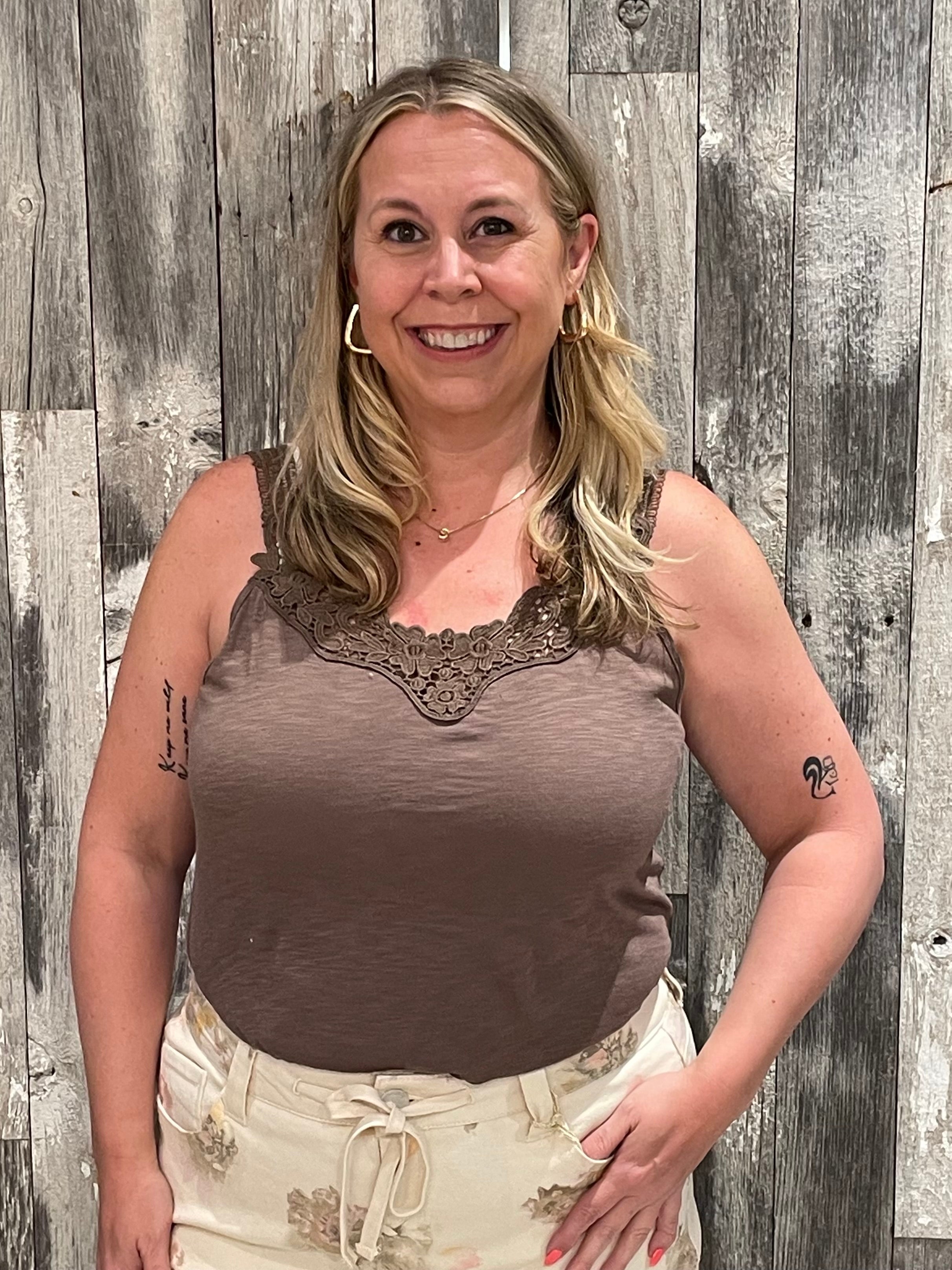 V Neck W/ Crochet Detail Knit Tank