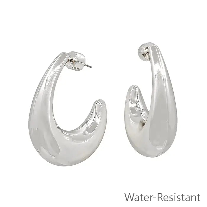Water Resistant Silver Thick Teardrop 1.5" Earring