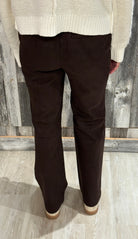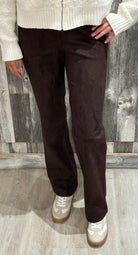 • Stretch faux-suede pants with a smooth, pull-on waistband