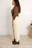 Channel retro vibes with these wide-leg pants, featuring a flattering high-rise fit. The five-pocket design offers ample space for your essentials, while the soft corduroy fabric, enhanced with stretch, ensures easygoing comfort and flexibility.