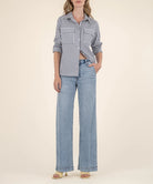 • These high rise wide leg jeans with a clean finish hem are a must-have for your wardrobe. The medium base wash offers a timeless look that pairs effortlessly with any outfit. Comfortable, flattering, and stylish.