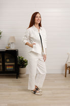 Say hello to the Mac and Me Ruched Sleeve Denim Jacket in Optic White — the crisp, polished layer that instantly elevates any outfit. This isn’t your average denim jacket. The optic white wash feels clean and modern, while the ruched sleeve detail adds a feminine, fashion-forward twist. It’s the perfect lightweight layer for spring-to-summer styling and that effortless “I just threw this on” vibe (even when you totally planned it).