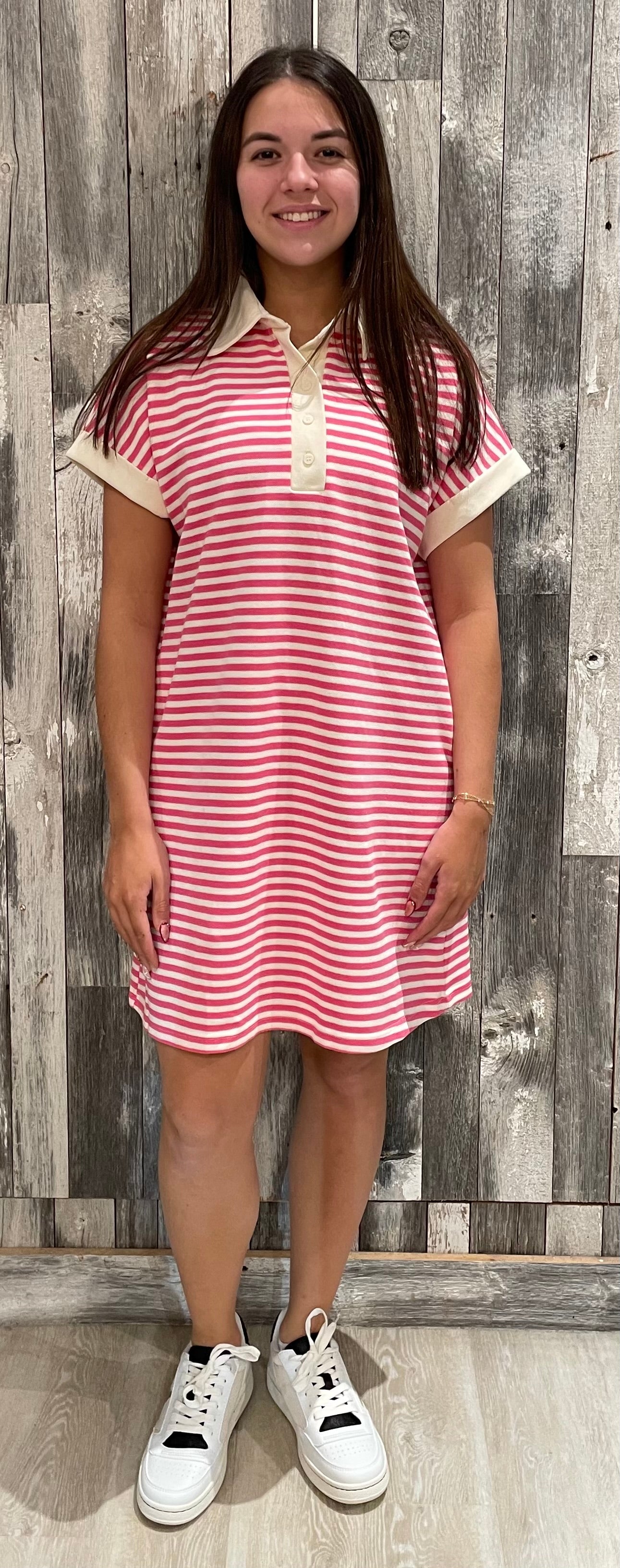 This striped polo dress is the definition of easy, everyday style with a polished twist. Designed with a relaxed shift silhouette, soft knit feel, and classic collared neckline, it’s a throw-on-and-go piece you’ll reach for all season long.