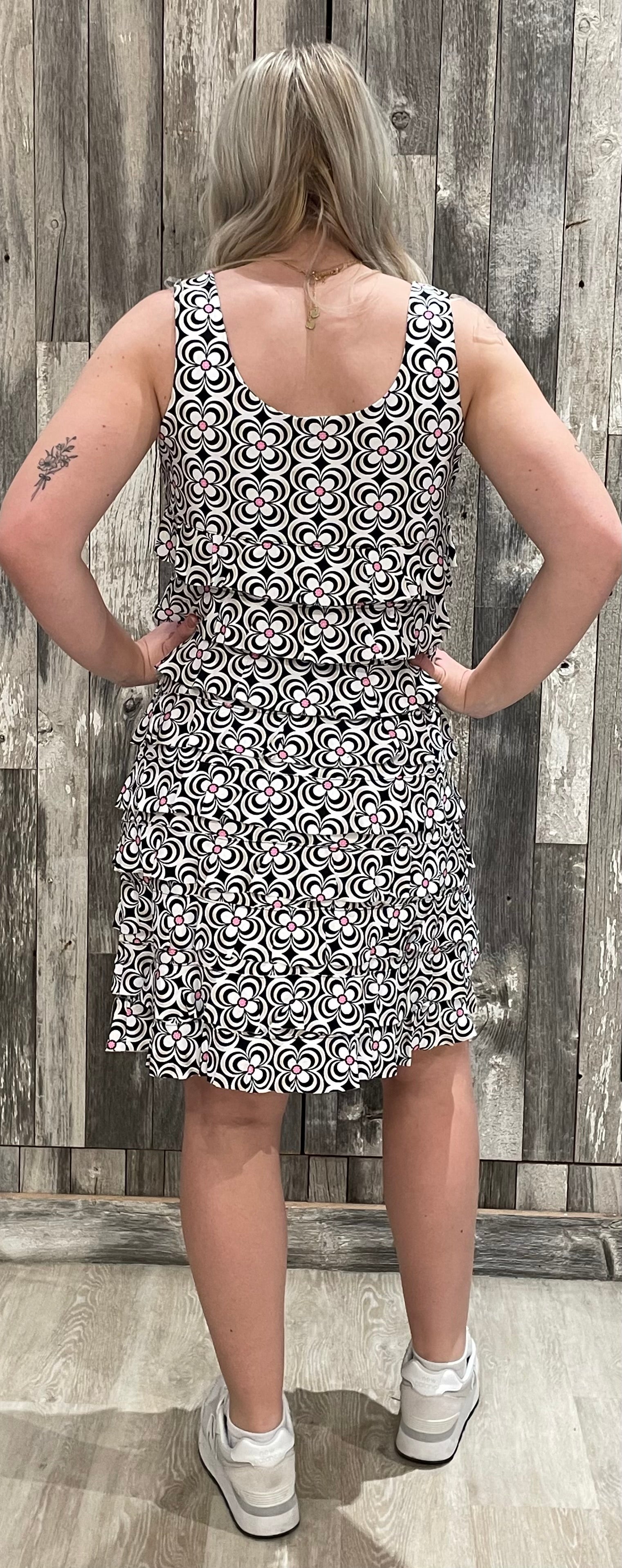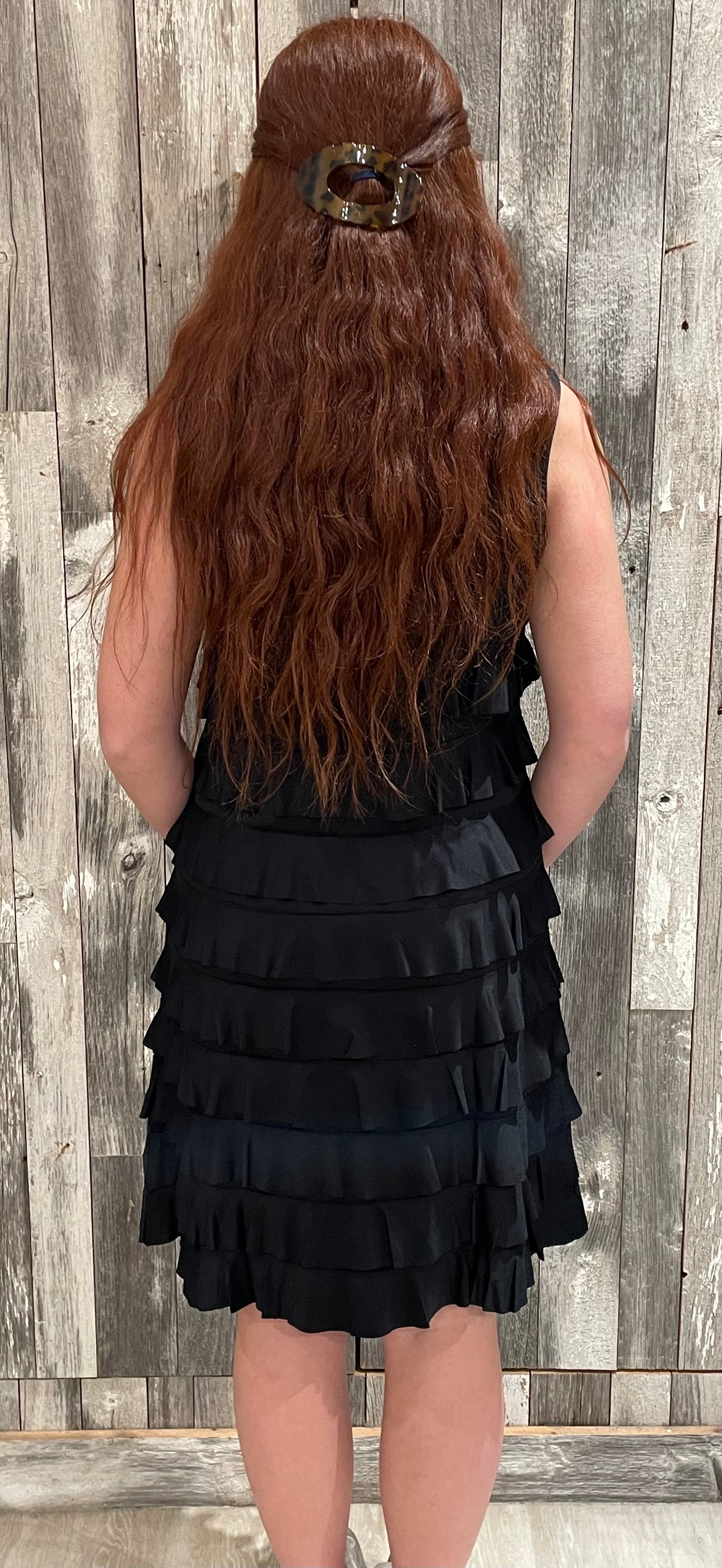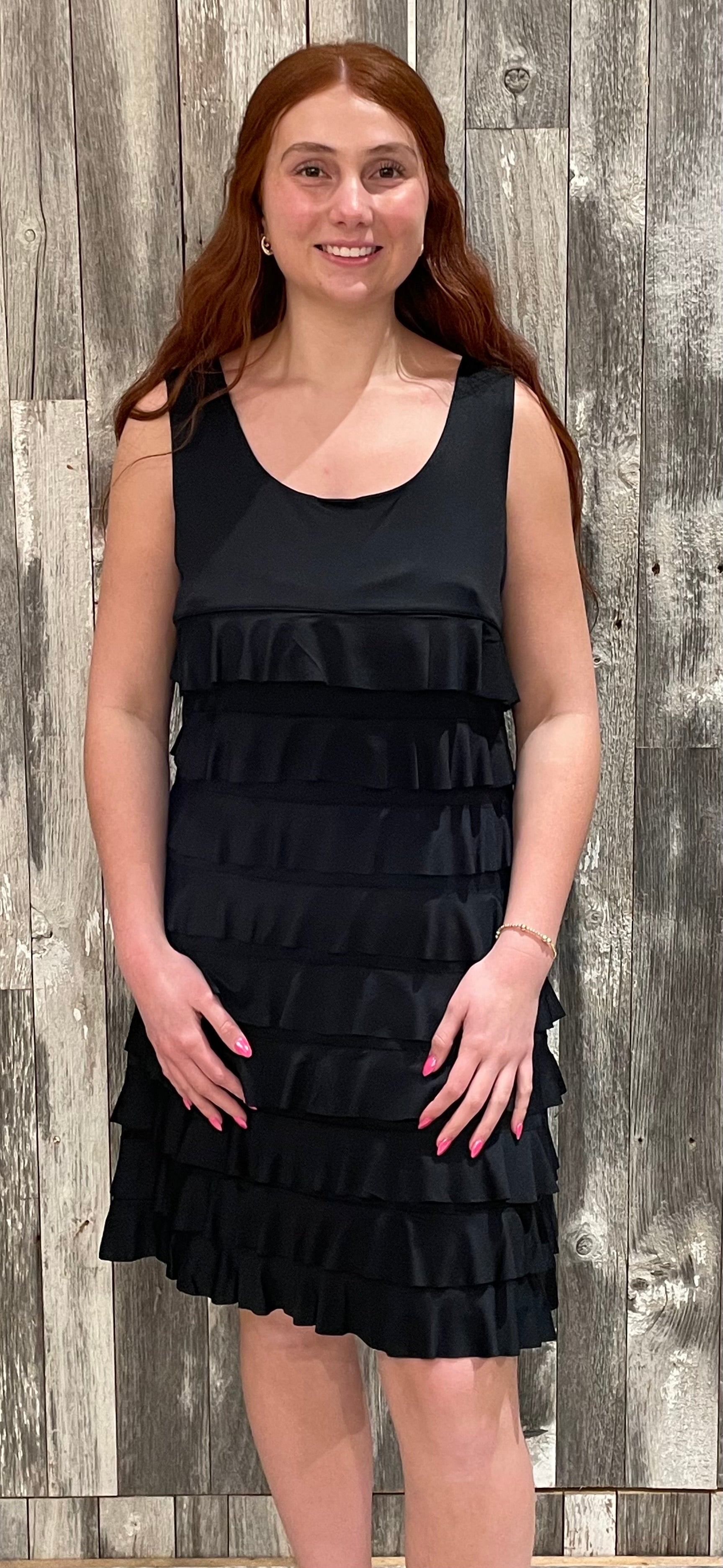 This sleeveless ruffle dress is a timeless staple with a fun, feminine twist. Designed with a flattering scoop neckline and tiered ruffle layers, it offers movement, texture, and easy elegance—perfect for everything from date nights to special occasions.