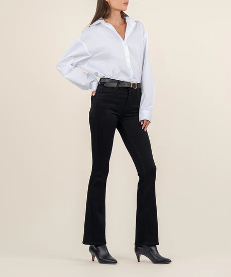 Meet the Natalie Bootcut—your new go-to for flattering, polished denim. Designed with KUT’s Fab AB front pocket technology, this pair smooths and supports while giving you all-day comfort. The sleek black wash and elongating bootcut silhouette make these a timeless wardrobe staple you'll reach for on repeat.