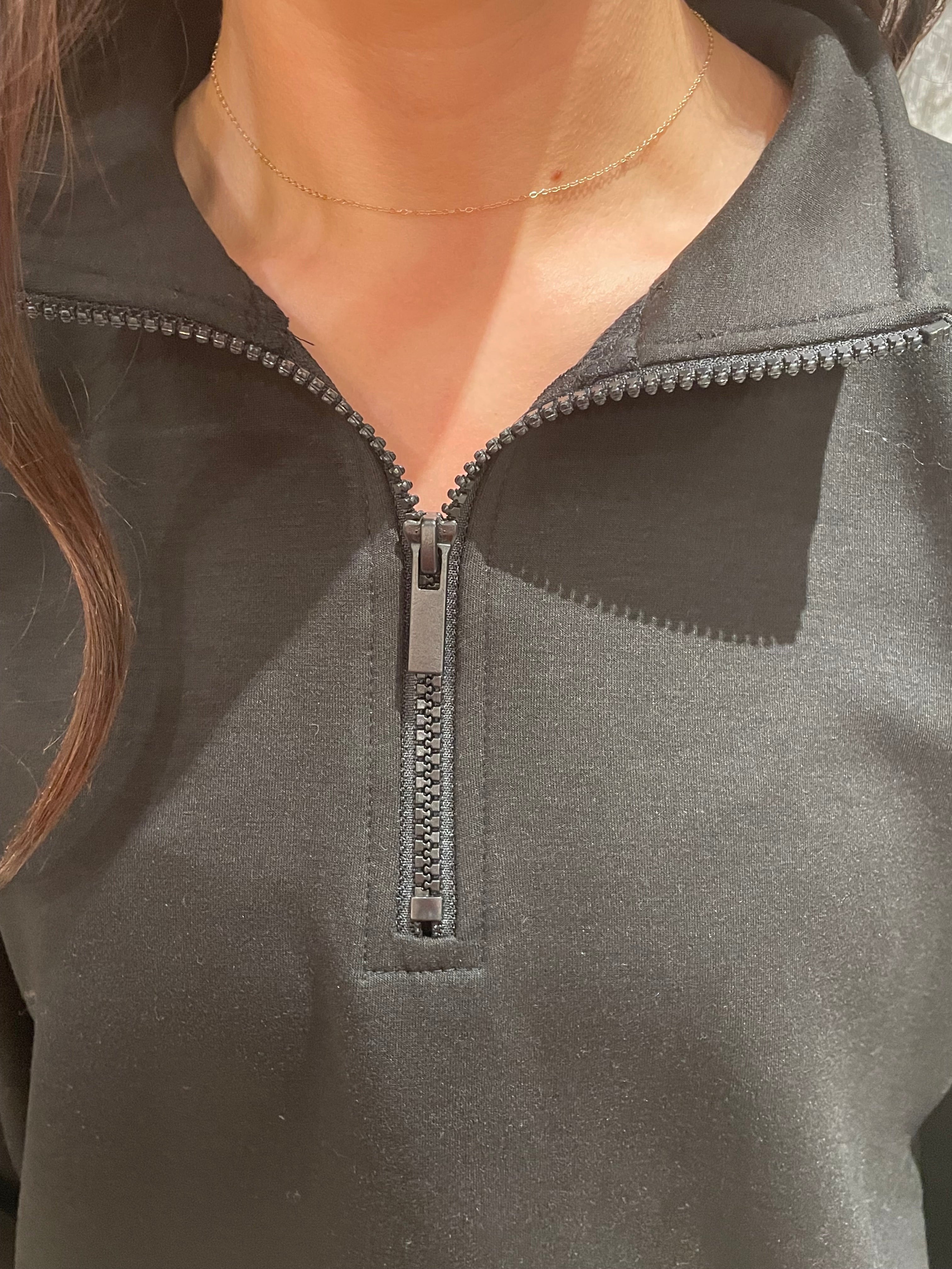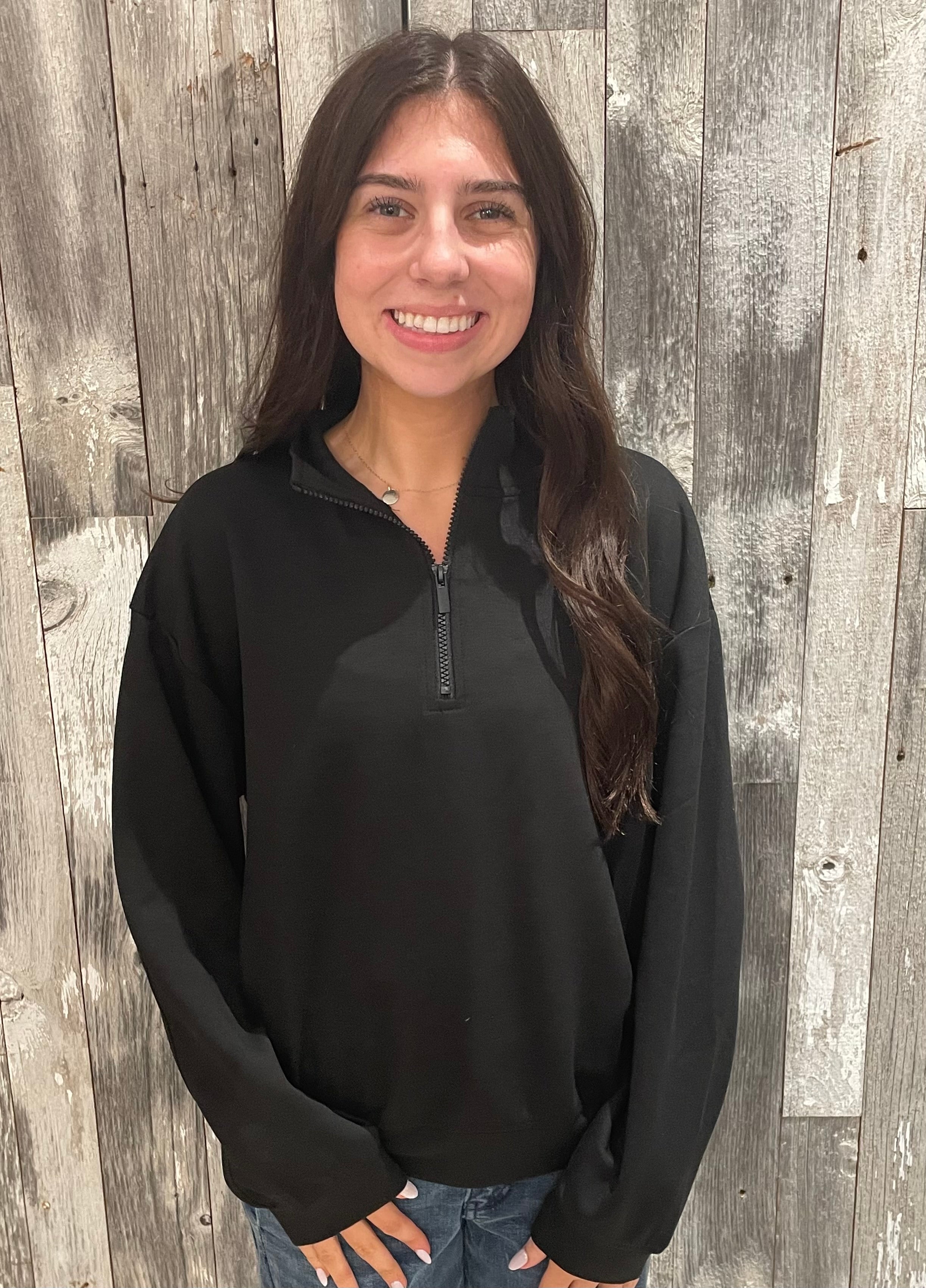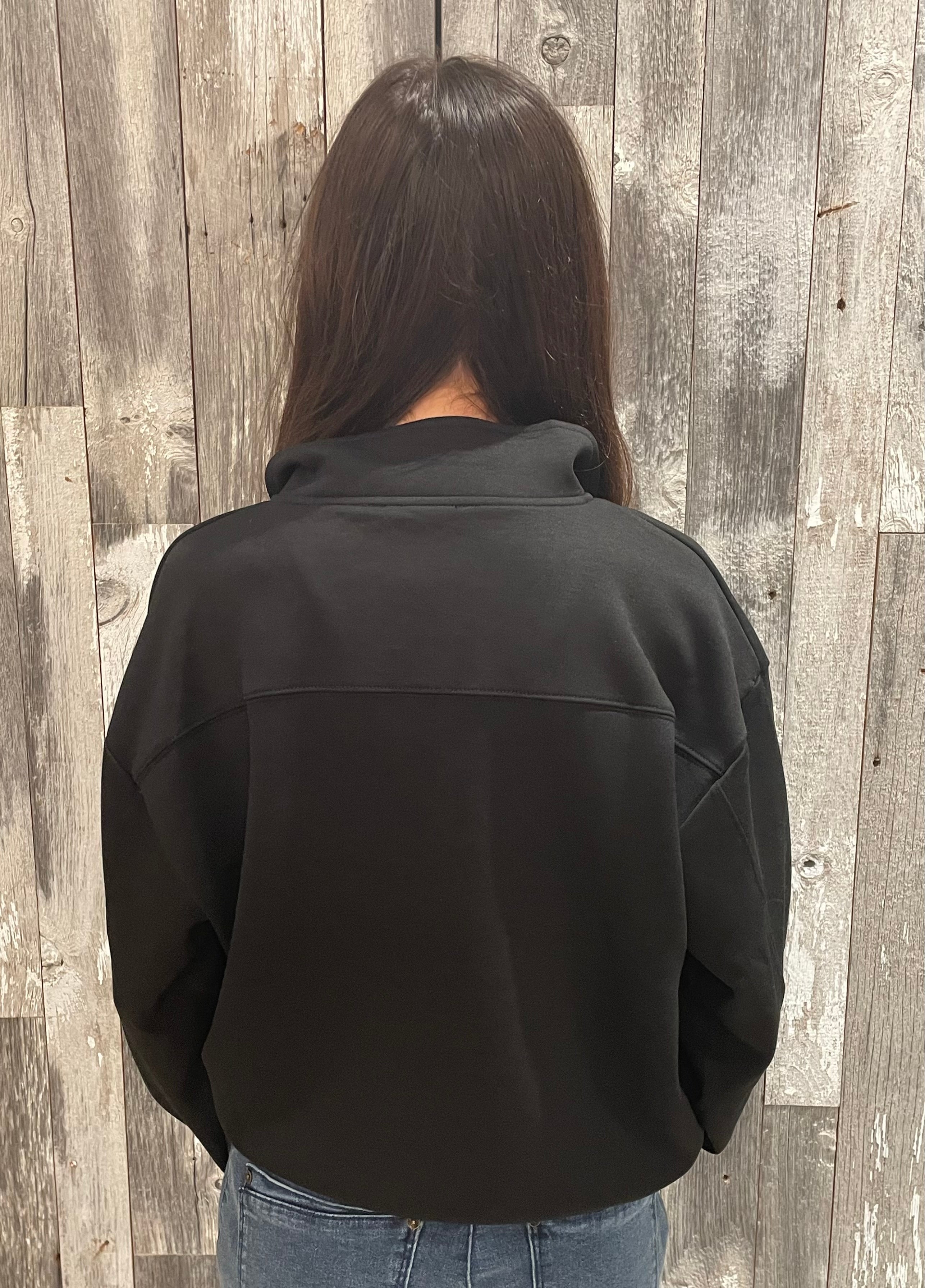 Relaxed half-zip pullover scuba sweatshirt