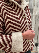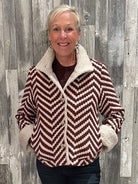 The Chevron Boucle Jacket is your new go-to layer for effortless style and warmth. Crafted from a soft polyester-wool blend boucle fabric, it features a striking chevron pattern that adds subtle visual interest. Fully lined for comfort, this jacket is finished with a plush sherpa trim and classic button-front closure—perfect for elevating any outfit with a touch of cozy sophistication.