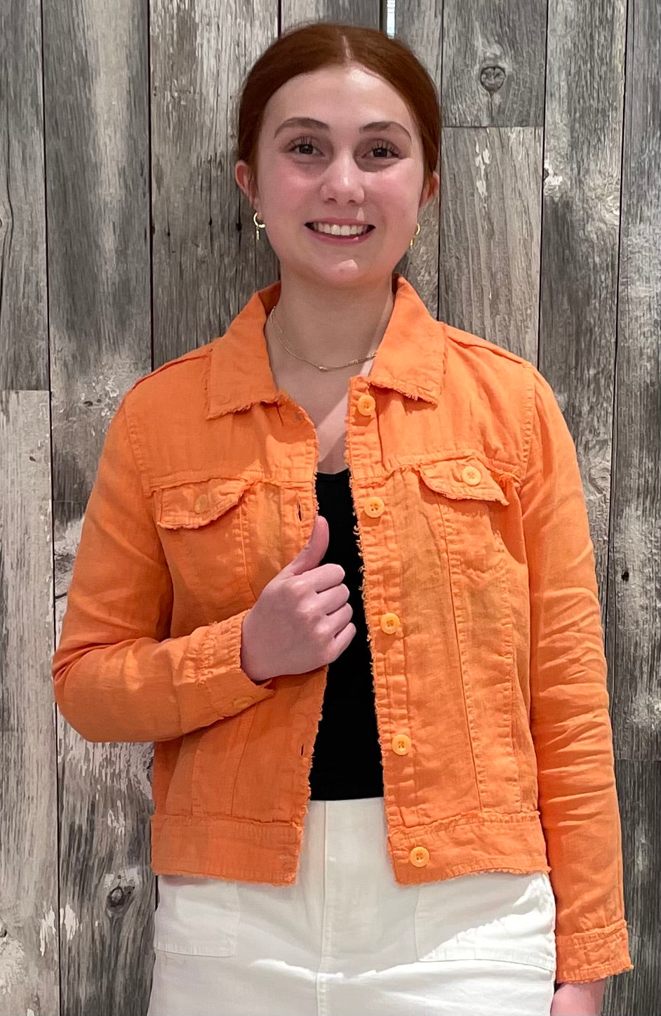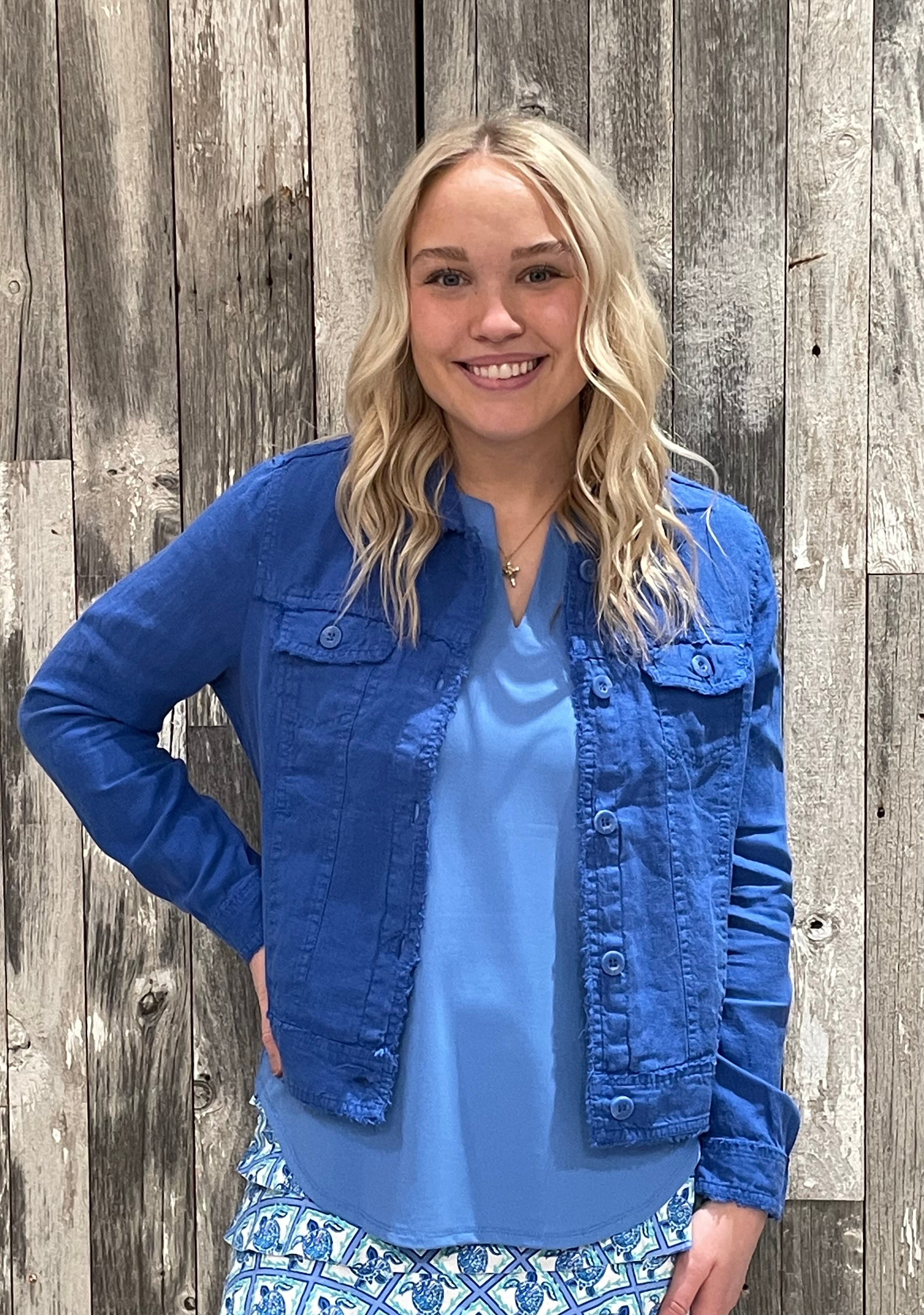 This cropped jacket is the perfect finishing touch for effortless, laid-back style. Designed with a soft, breathable feel and subtle raw-edge details, it adds just the right amount of polish without feeling heavy—ideal for layering year-round.