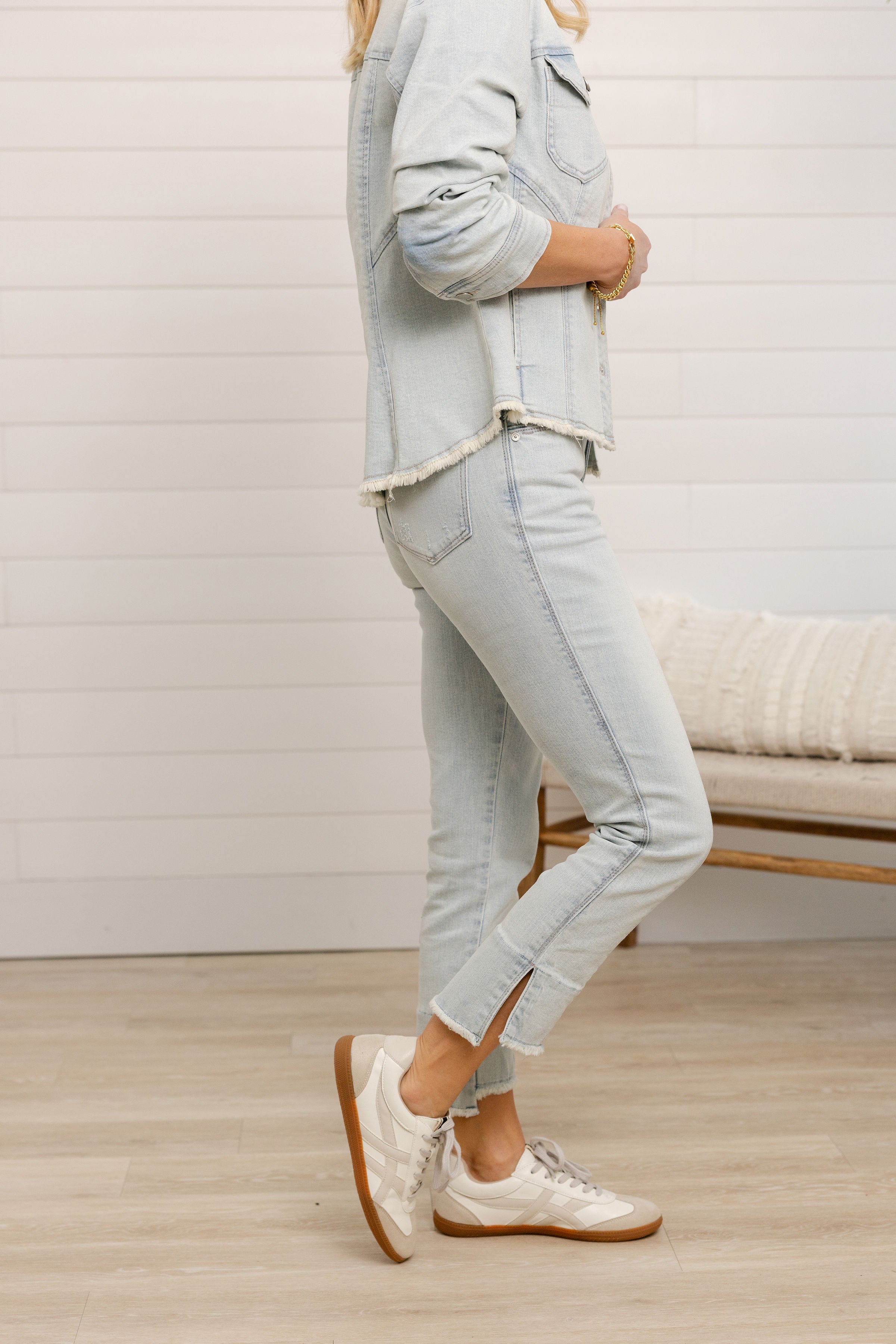 • raw, cropped hem for a modern finish