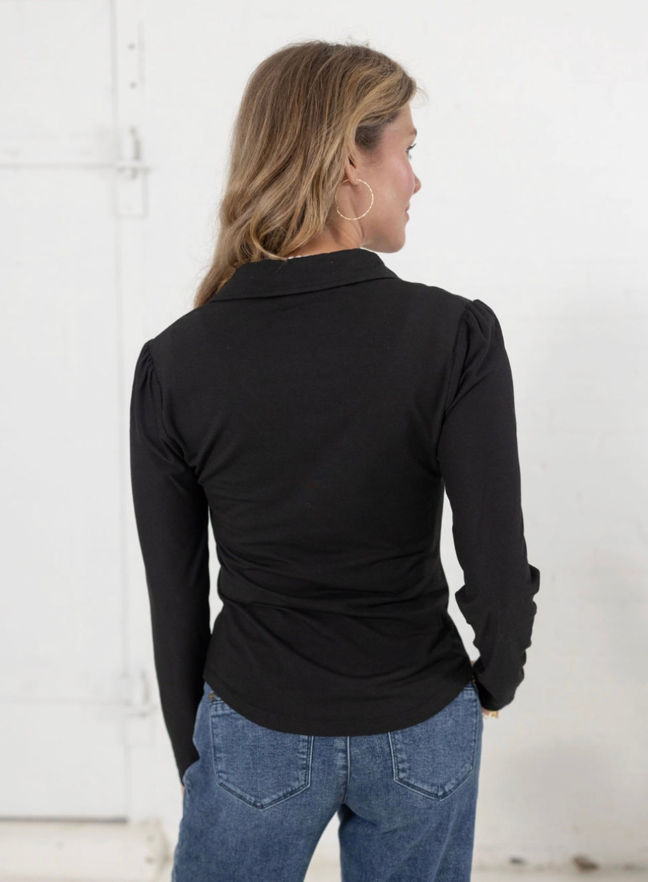 Ruched detailing: Subtle ruching along the button placket adds texture and creates a flattering, slightly fitted silhouette.