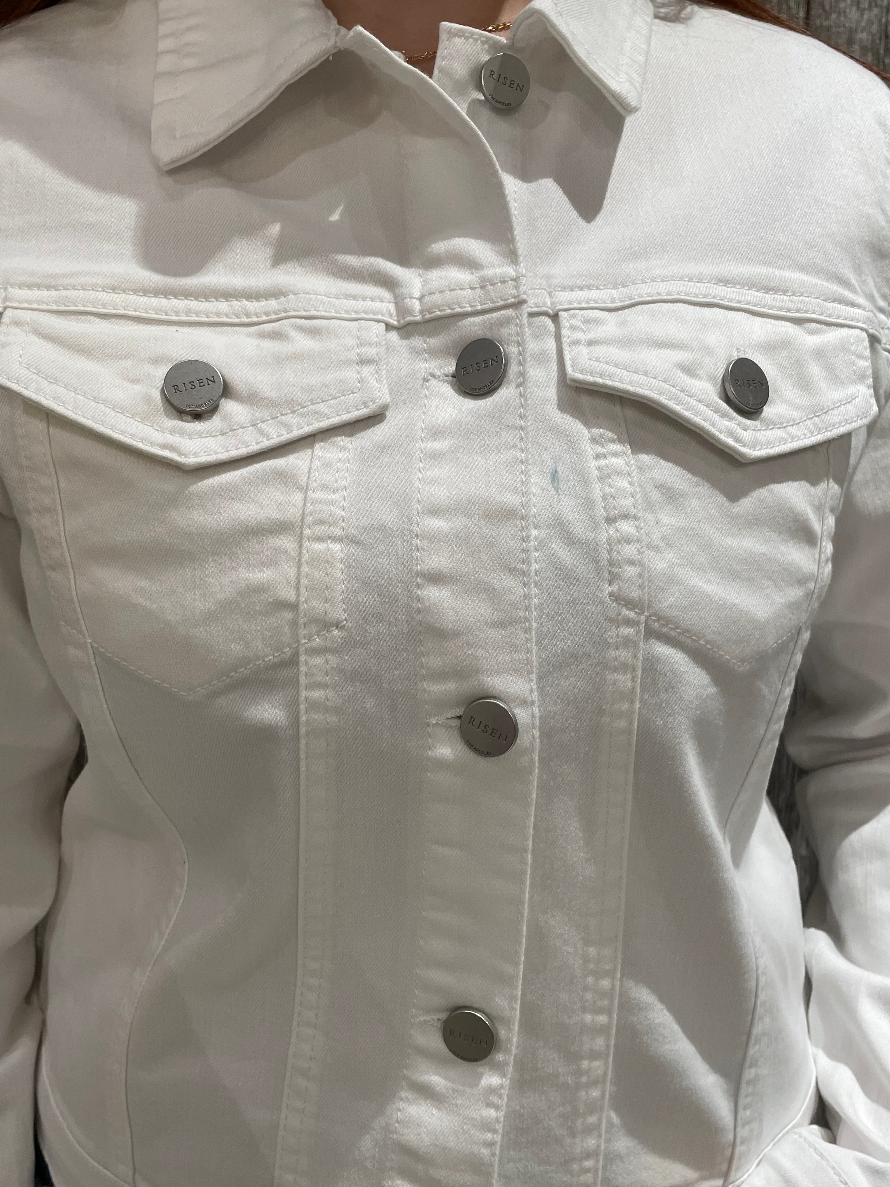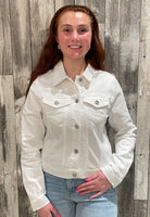 • Cropped white denim jacket