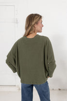 Batwing Mock Neck Mixed Media Rhinestone Top