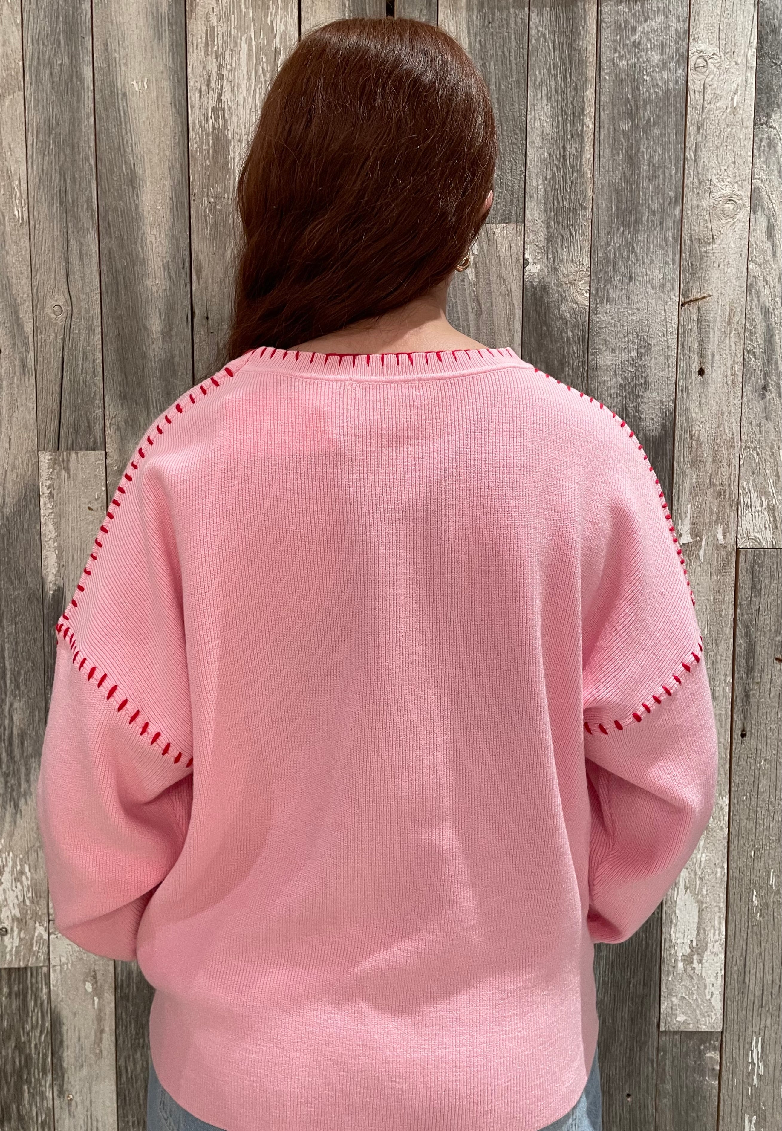 • Soft, lightweight knit sweater in a cheerful blush pink