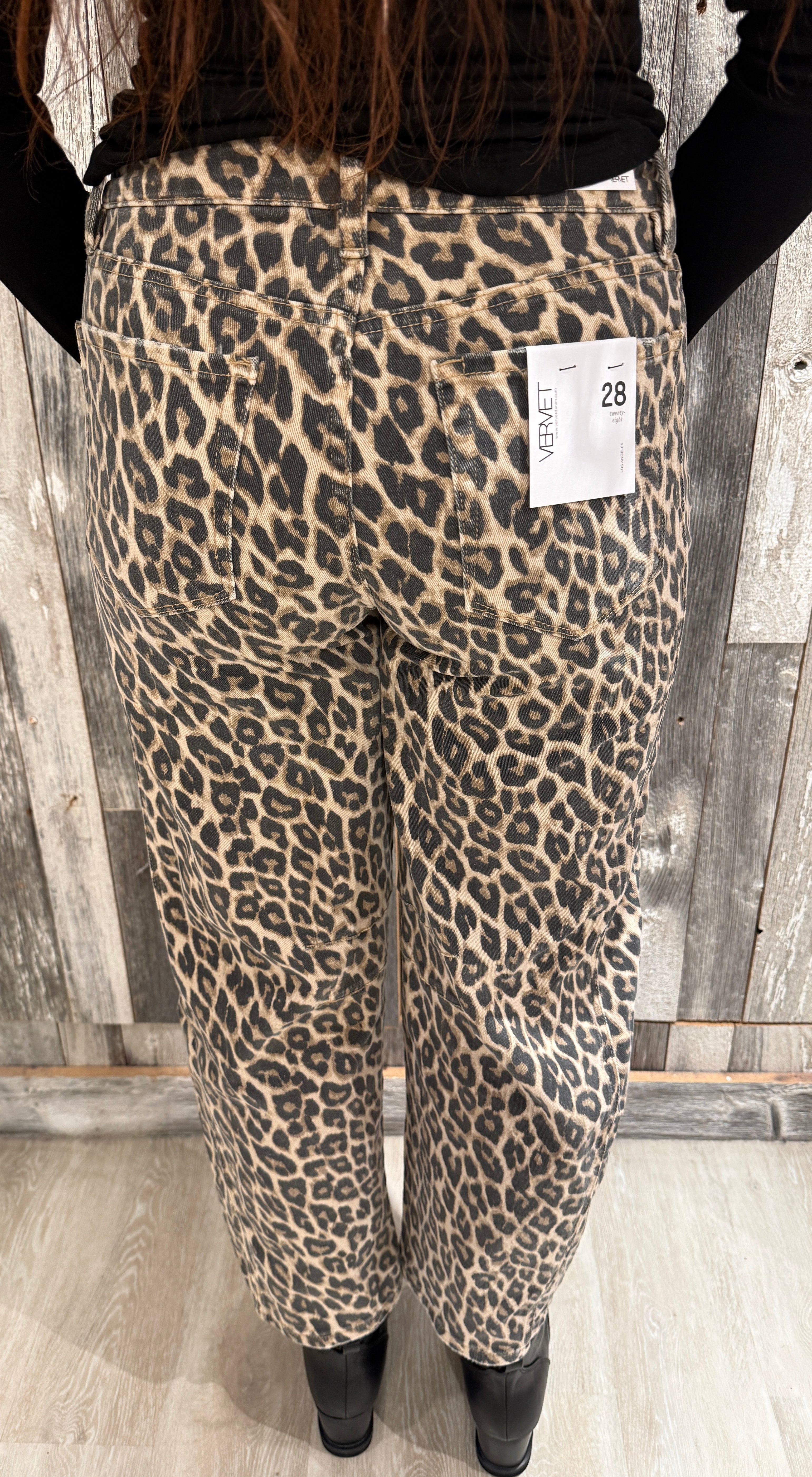 High Rise Leopard Print Barrel Jeans