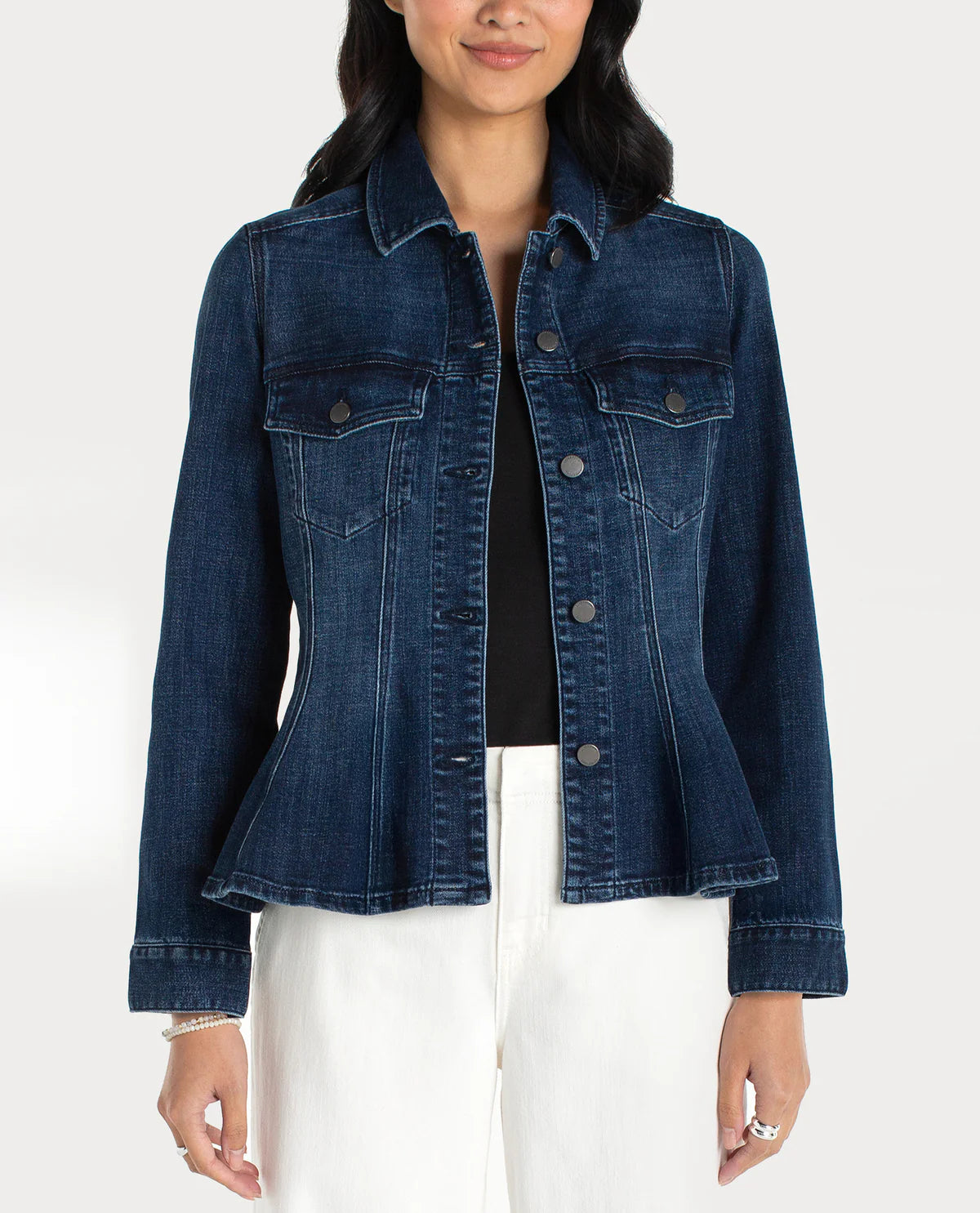 • Classic button-front closure with metal snaps