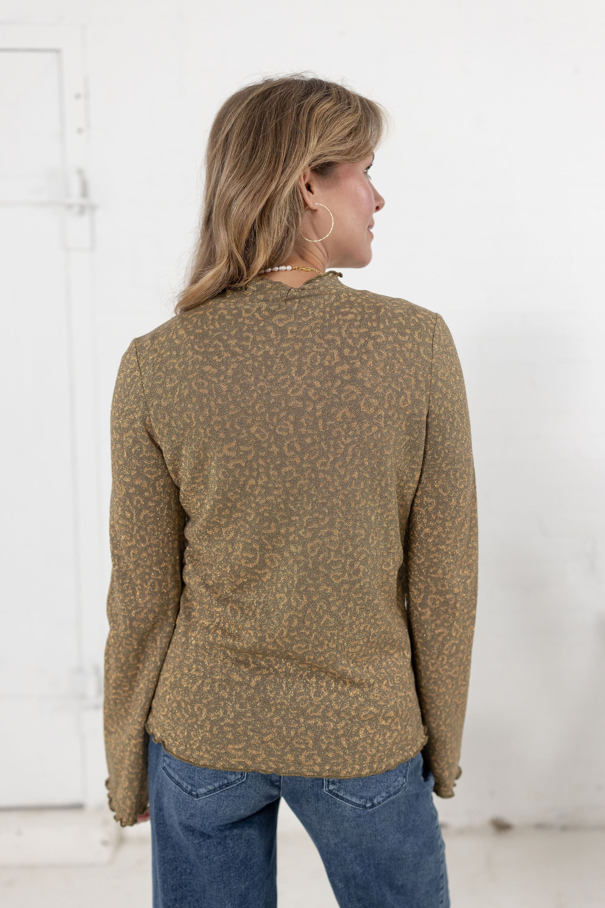 Lightweight long-sleeve top with subtle leopard print pattern