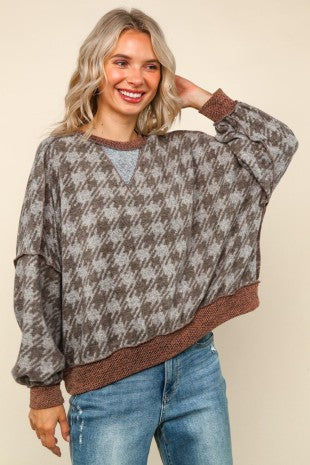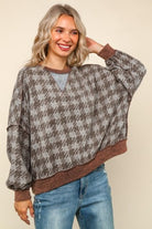 • Cozy knit pullover featuring an oversized houndstooth pattern