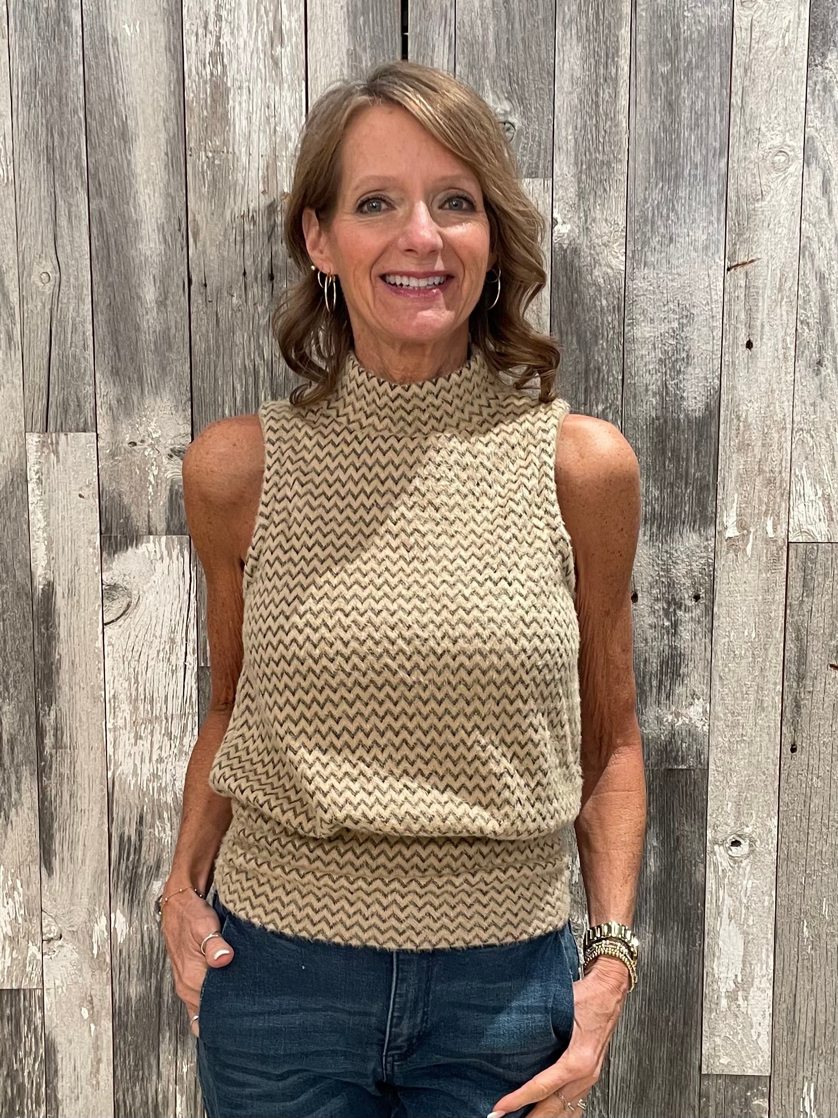 Sleeveless Turtle Neck Banded Hem Top