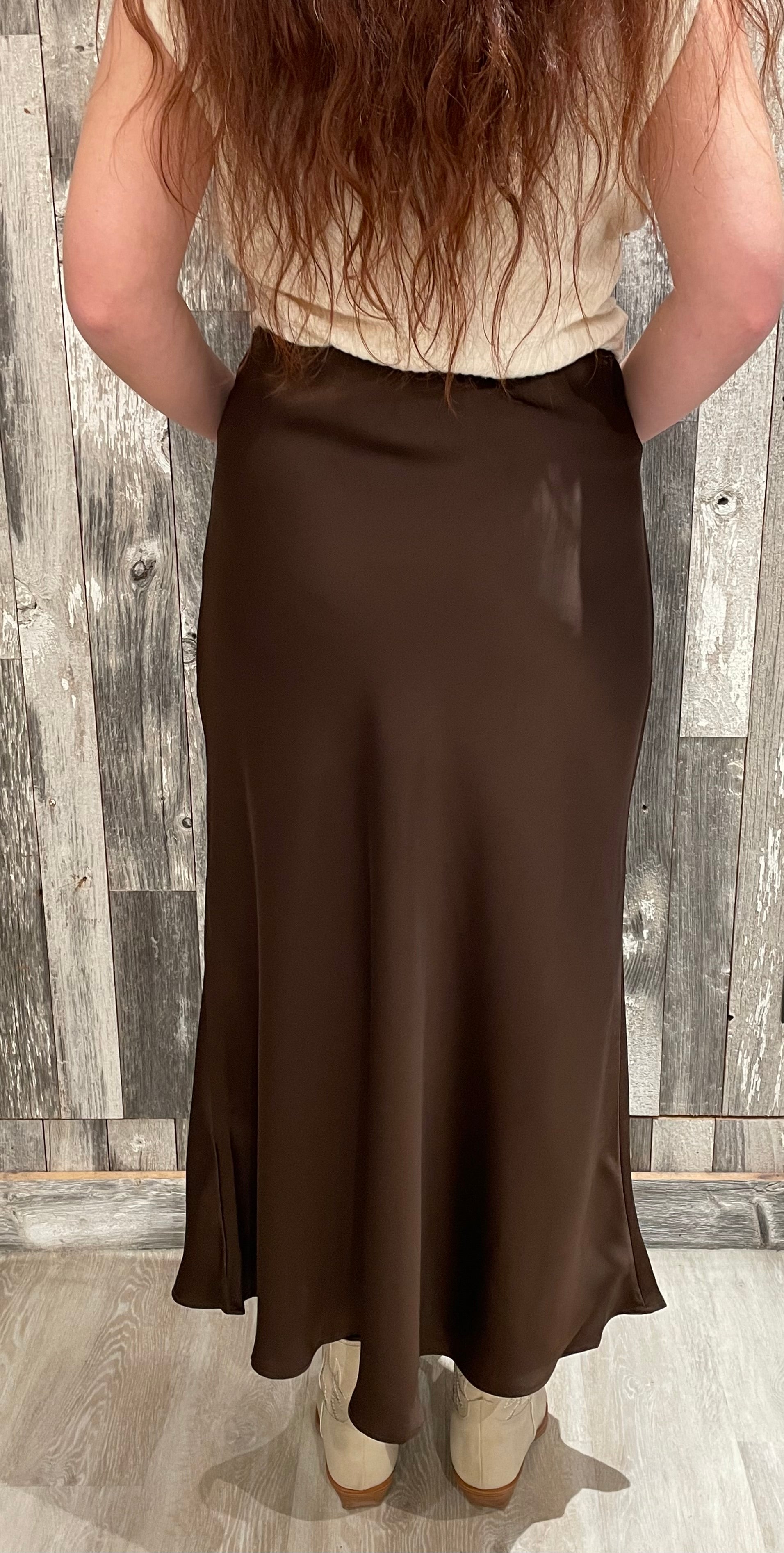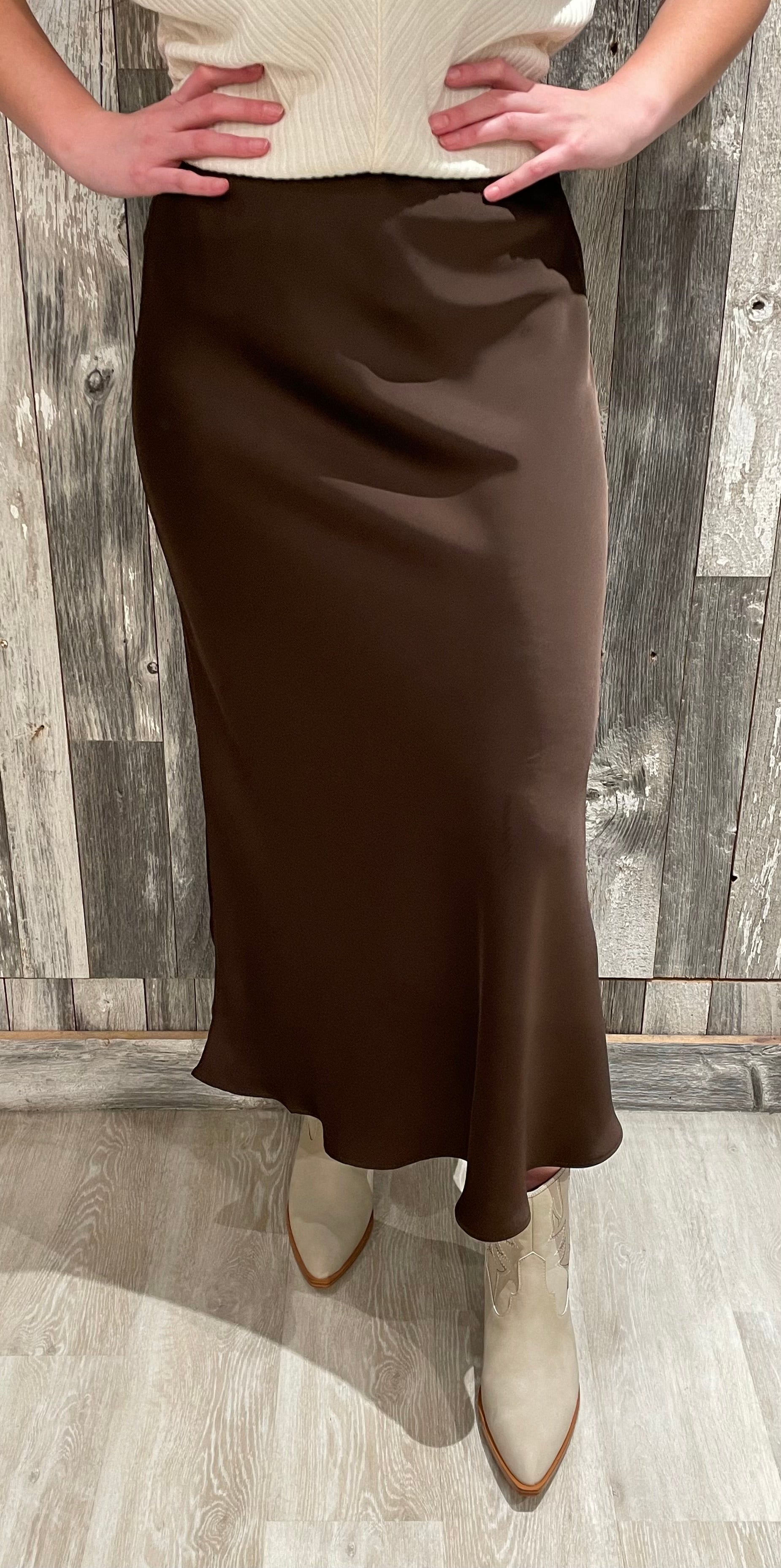 Solid Long Satin Skirt