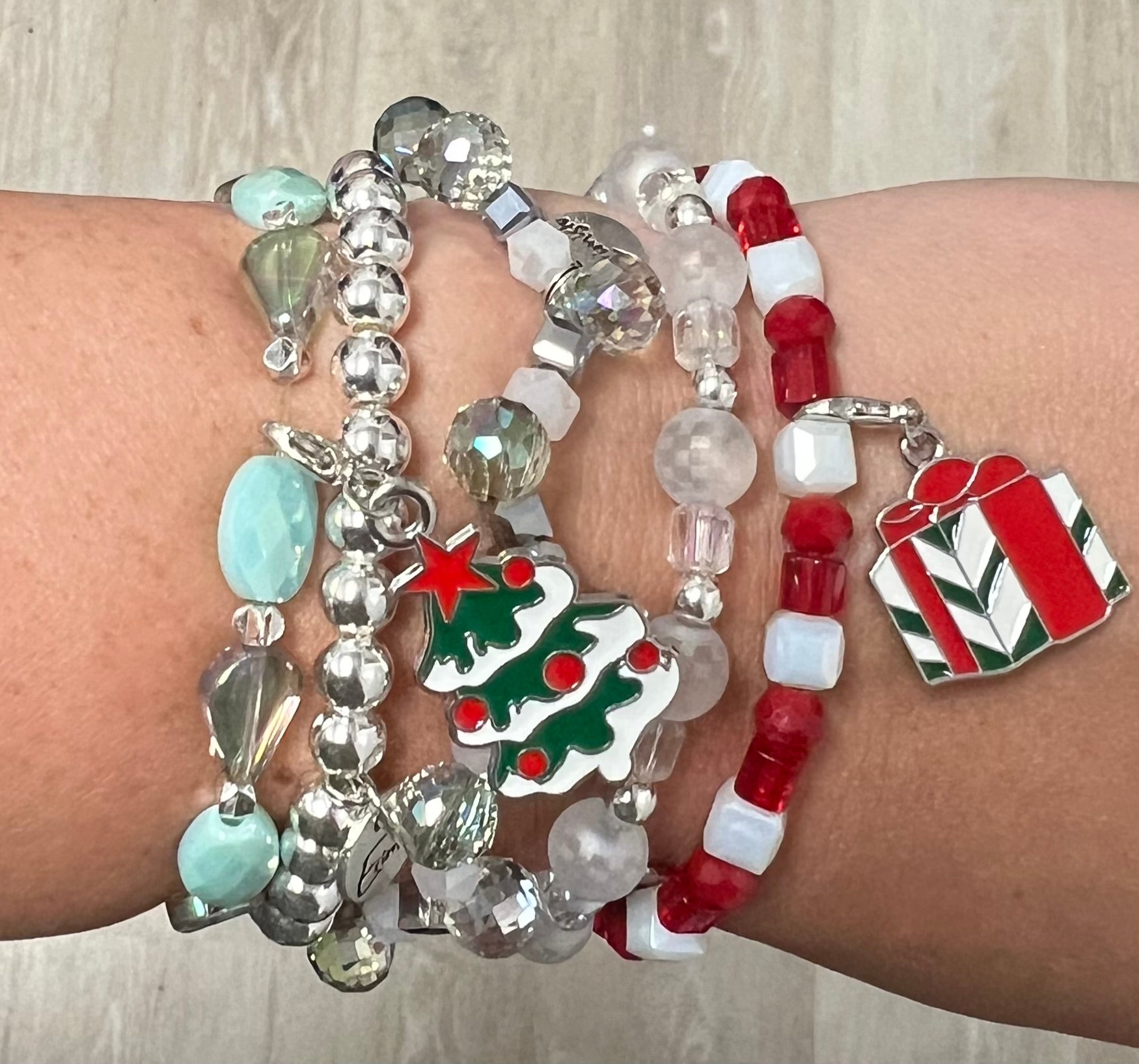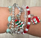 • Celebrate the season with the Tree Topper Stack, a vibrant bracelet set adorned with red and green hues and festive holiday charms. Perfect for layering, this playful stack brings joyful cheer and a whimsical touch to your holiday wardrobe.