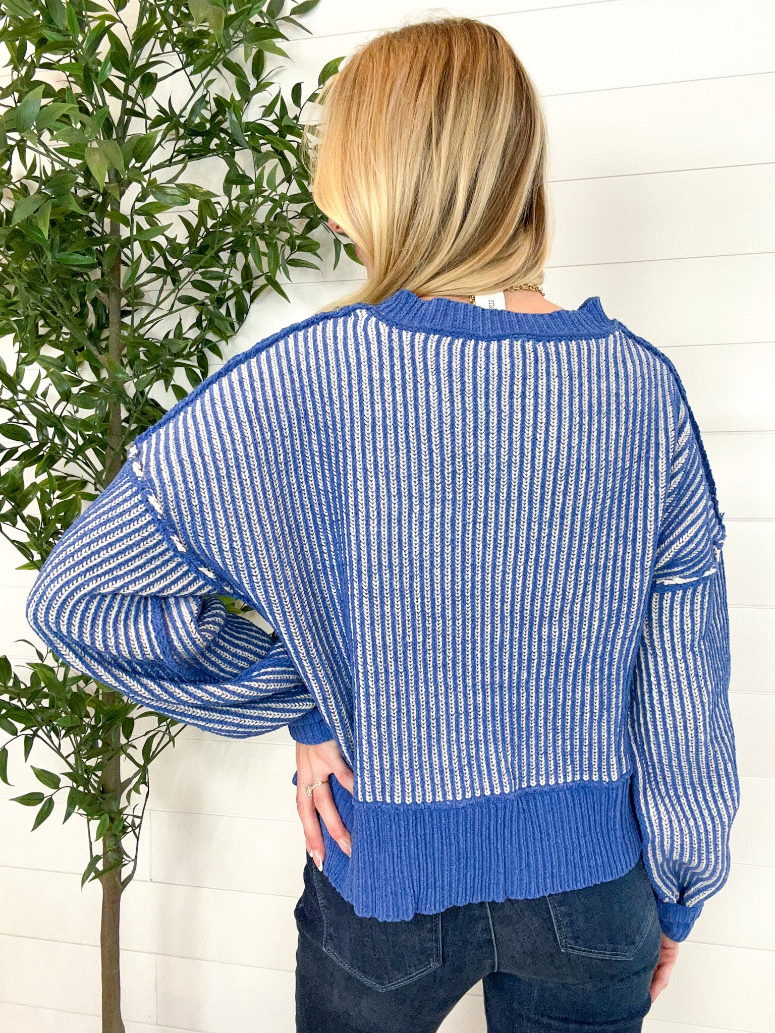 Two Tone Striped Casual Stripe Sweater Top
