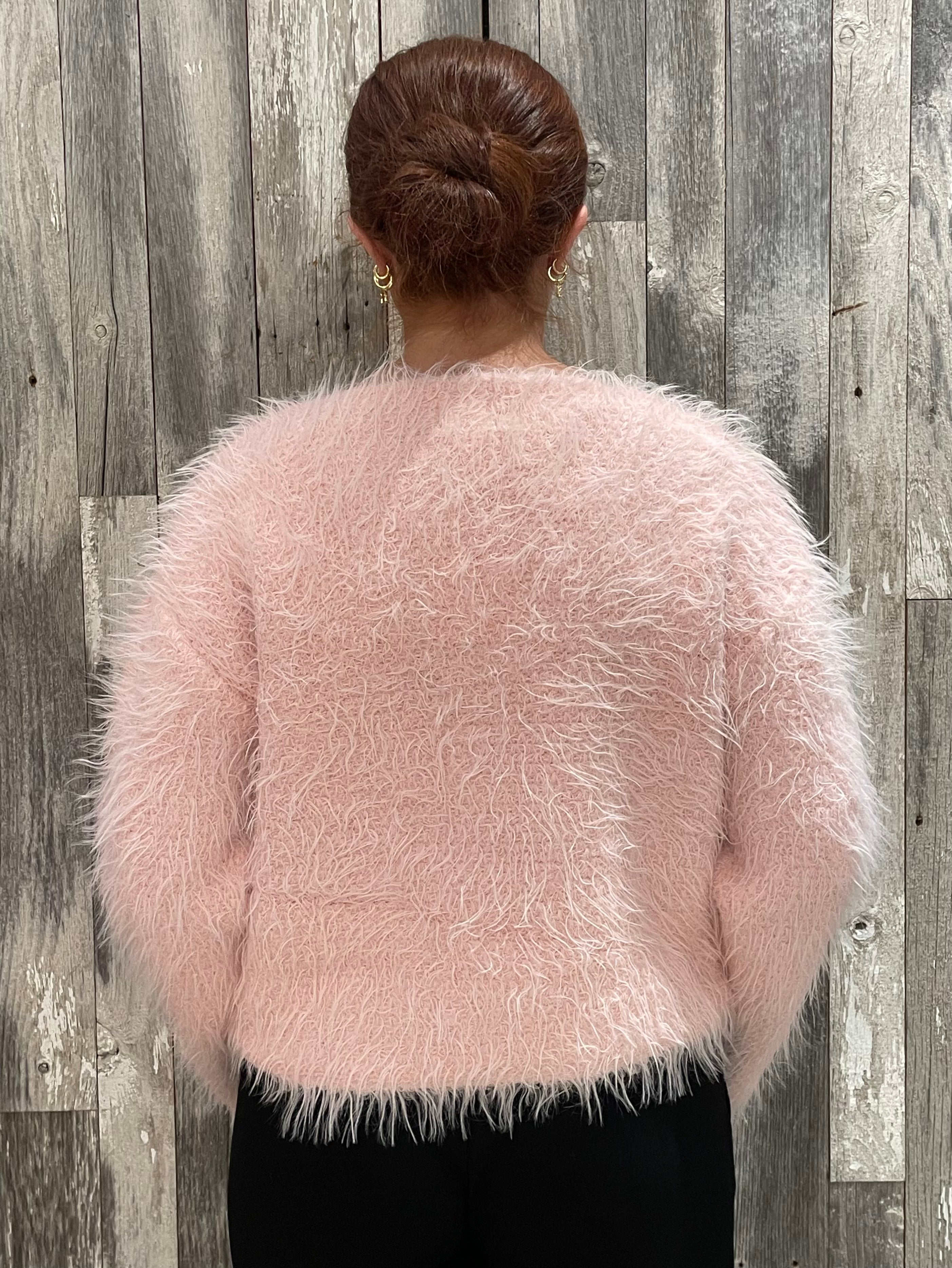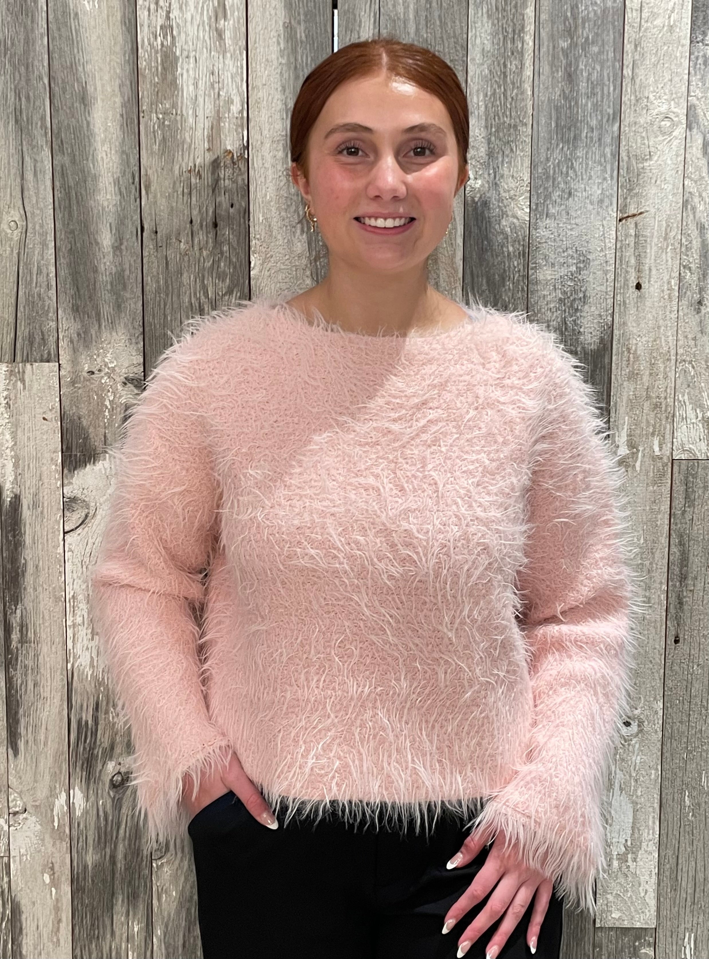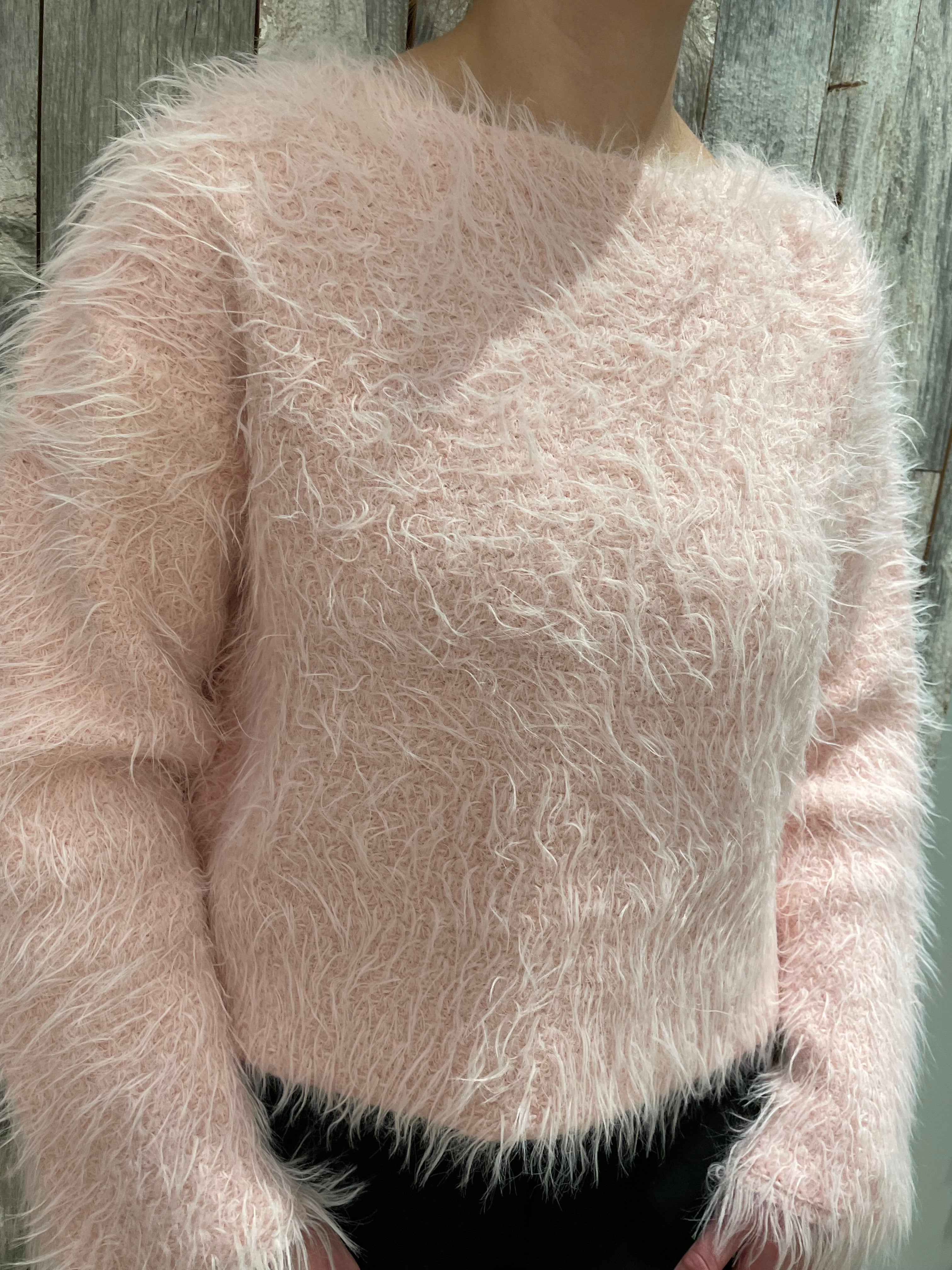 Soft, eyelash knit fabric with a fluffy, feathered texture
