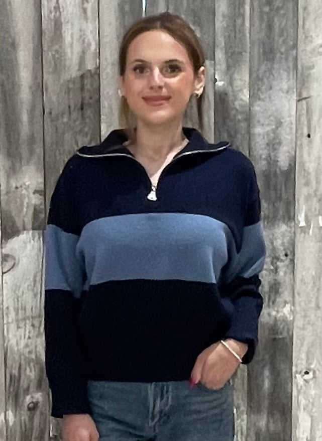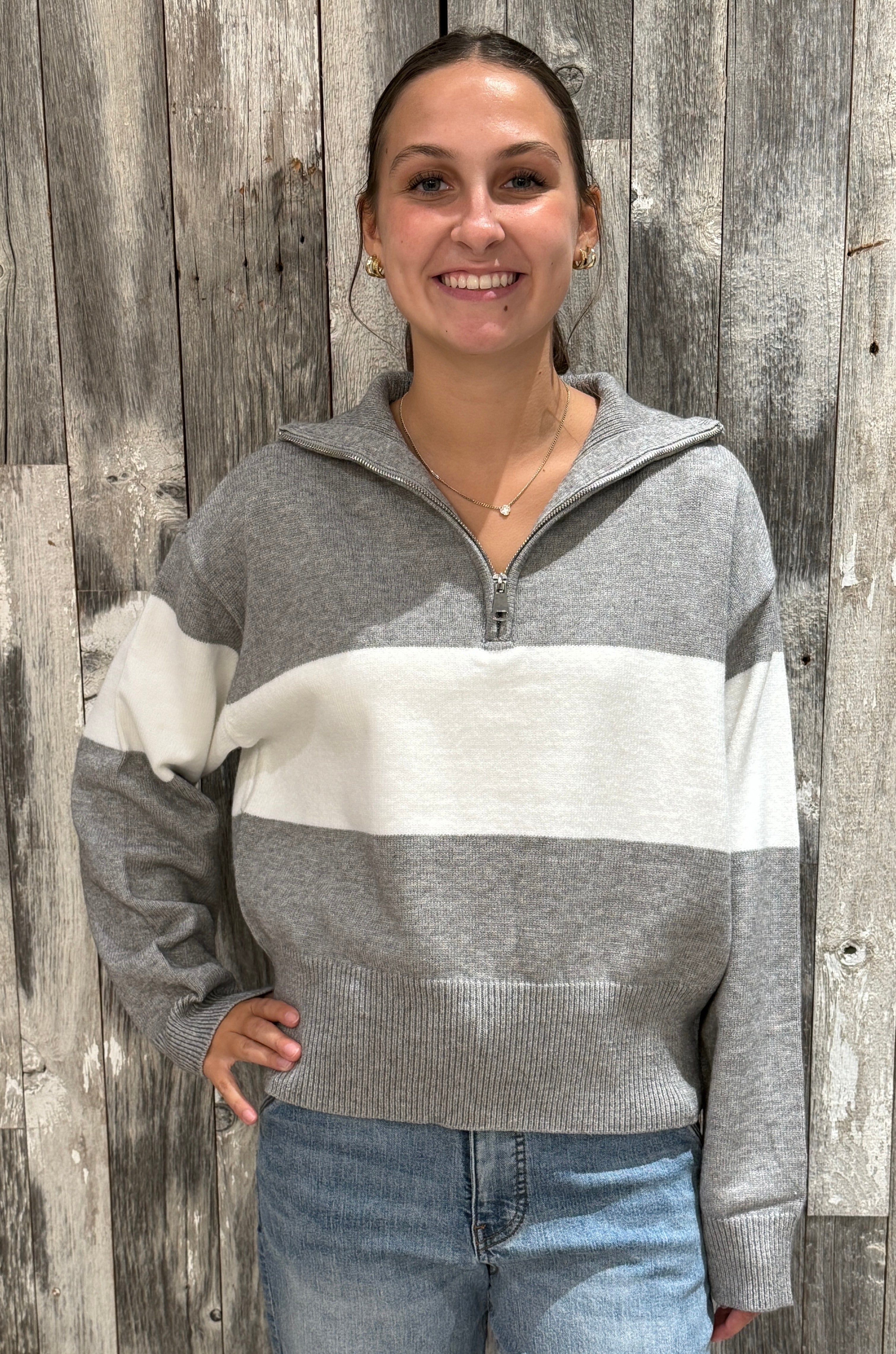 Style: Long-sleeve pullover sweater with a classic quarter-zip neckline