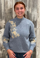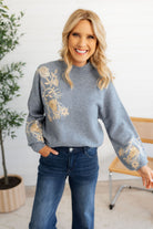 Floral Embroidery: Prominent mustard/golden yellow floral embroidery on the left shoulder, chest, and upper sleeve
