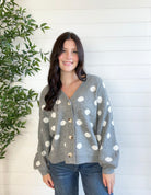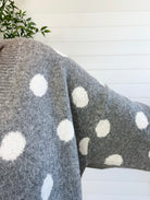 This oversized cardigan brings a little whimsy to your wardrobe with its bold polka dot pattern and cozy knit feel. The v-neckline and button-down front keep it classic, while the slight balloon sleeves add a modern, relaxed touch. Itâs one of those sweaters youâll want to throw on with everythingâeffortless, comfy, and totally charming.