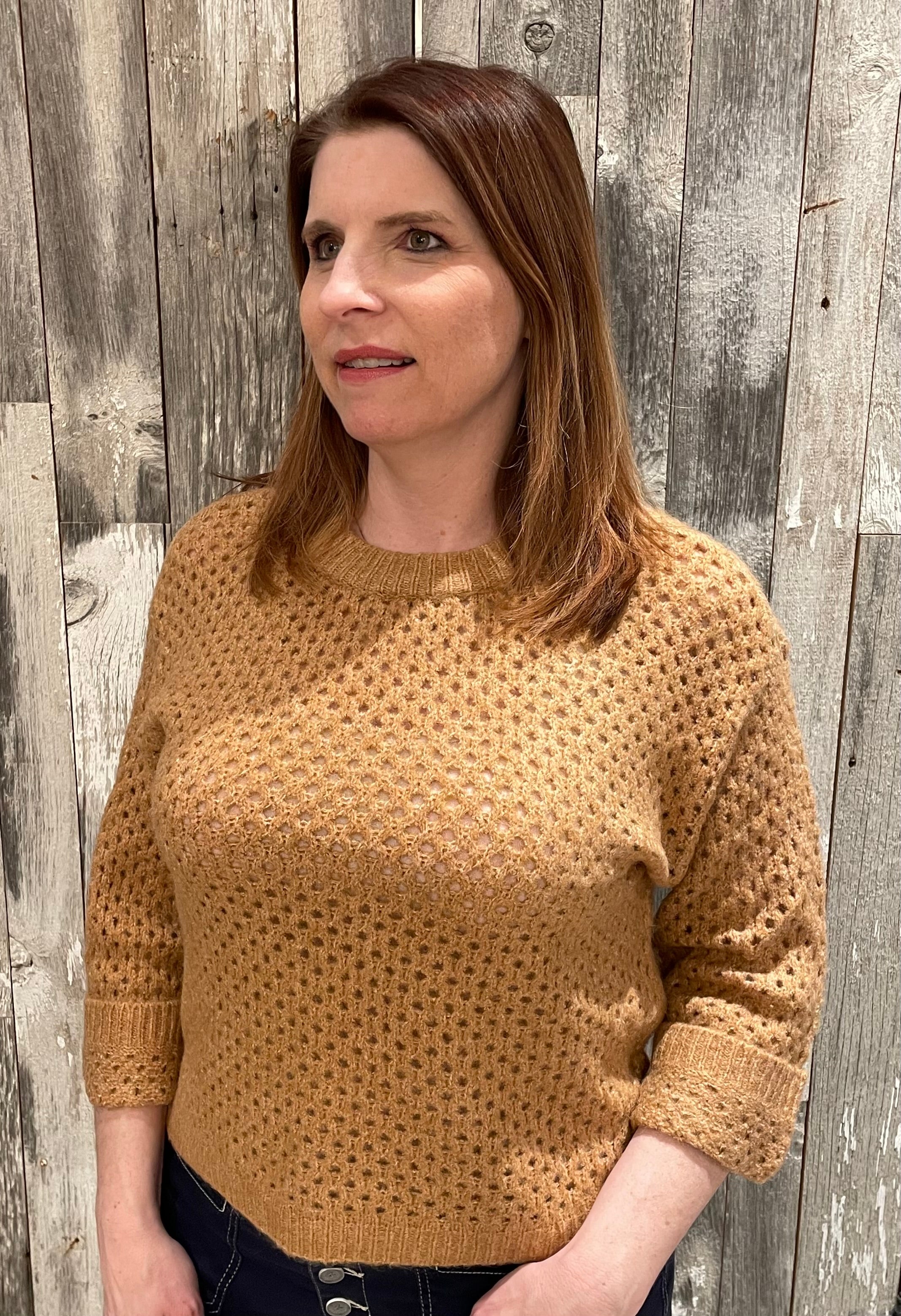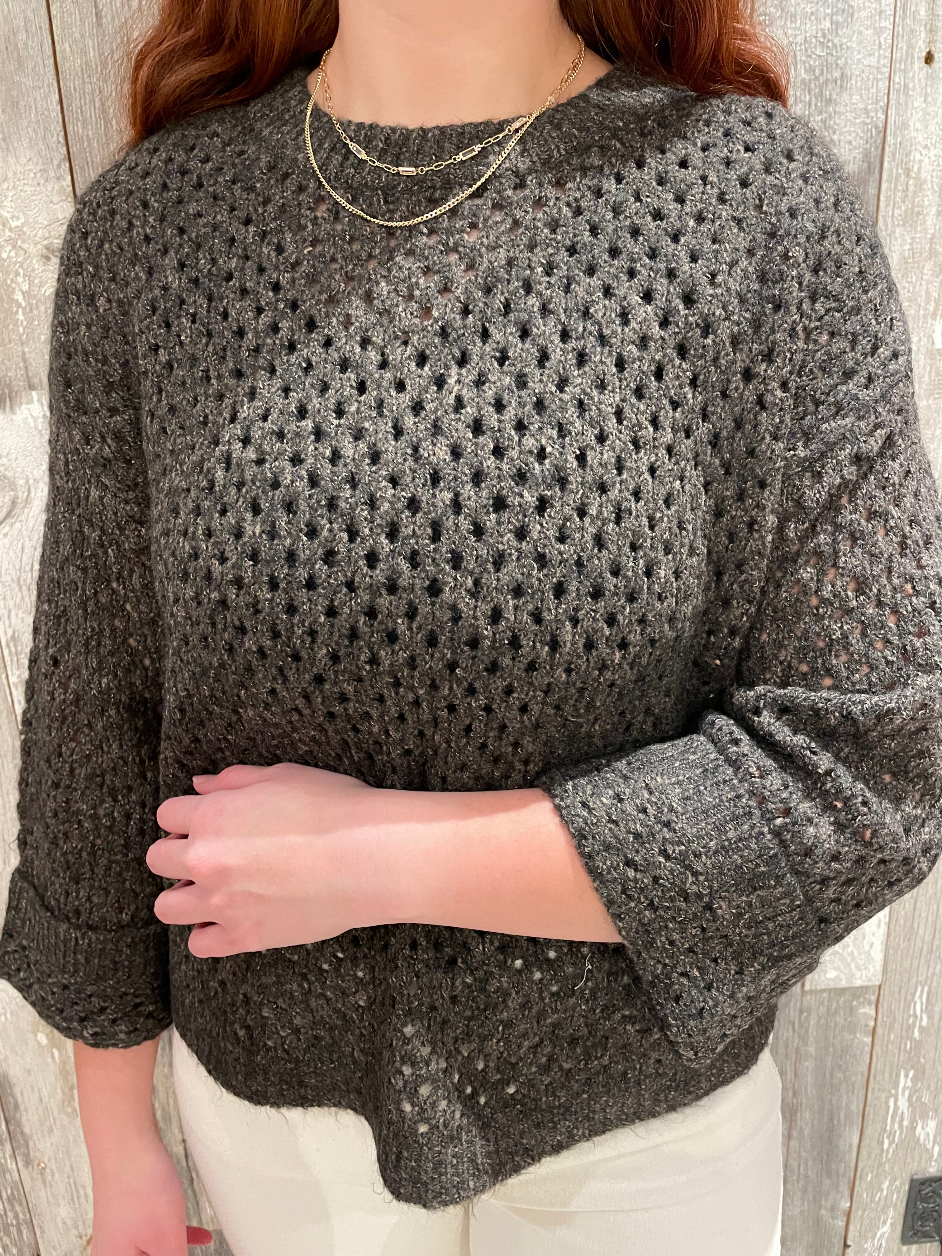 • Cozy open-knit sweater with a soft, textured feel