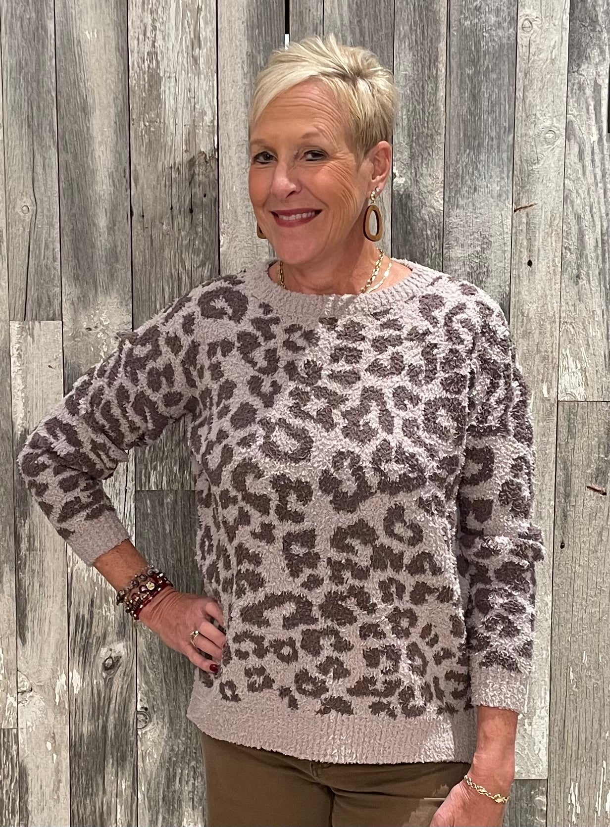 Ribbed trim at neckline, cuffs, and hem for a finished look