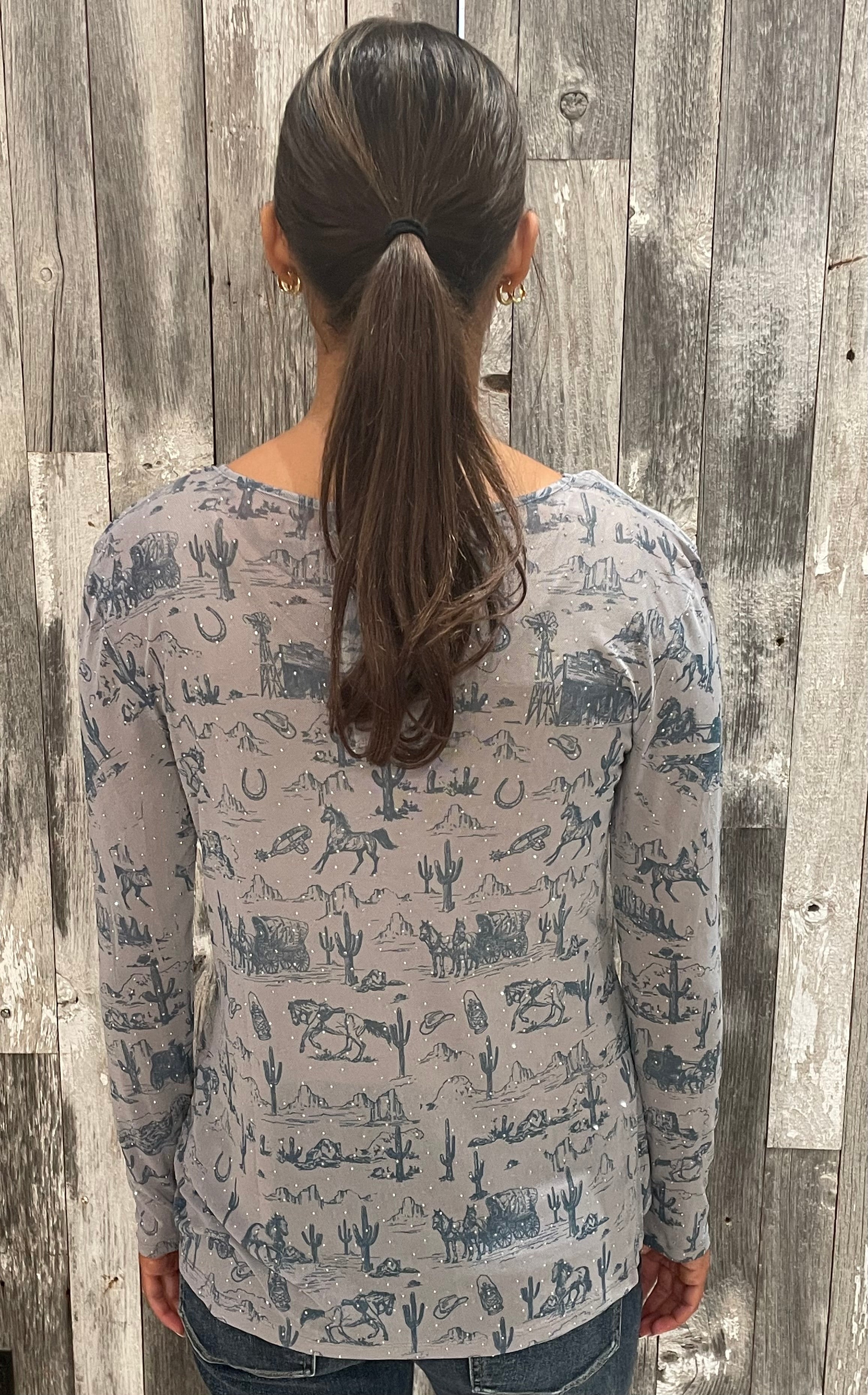Long Sleeve Mesh Old West Top w/ Sparkly Details