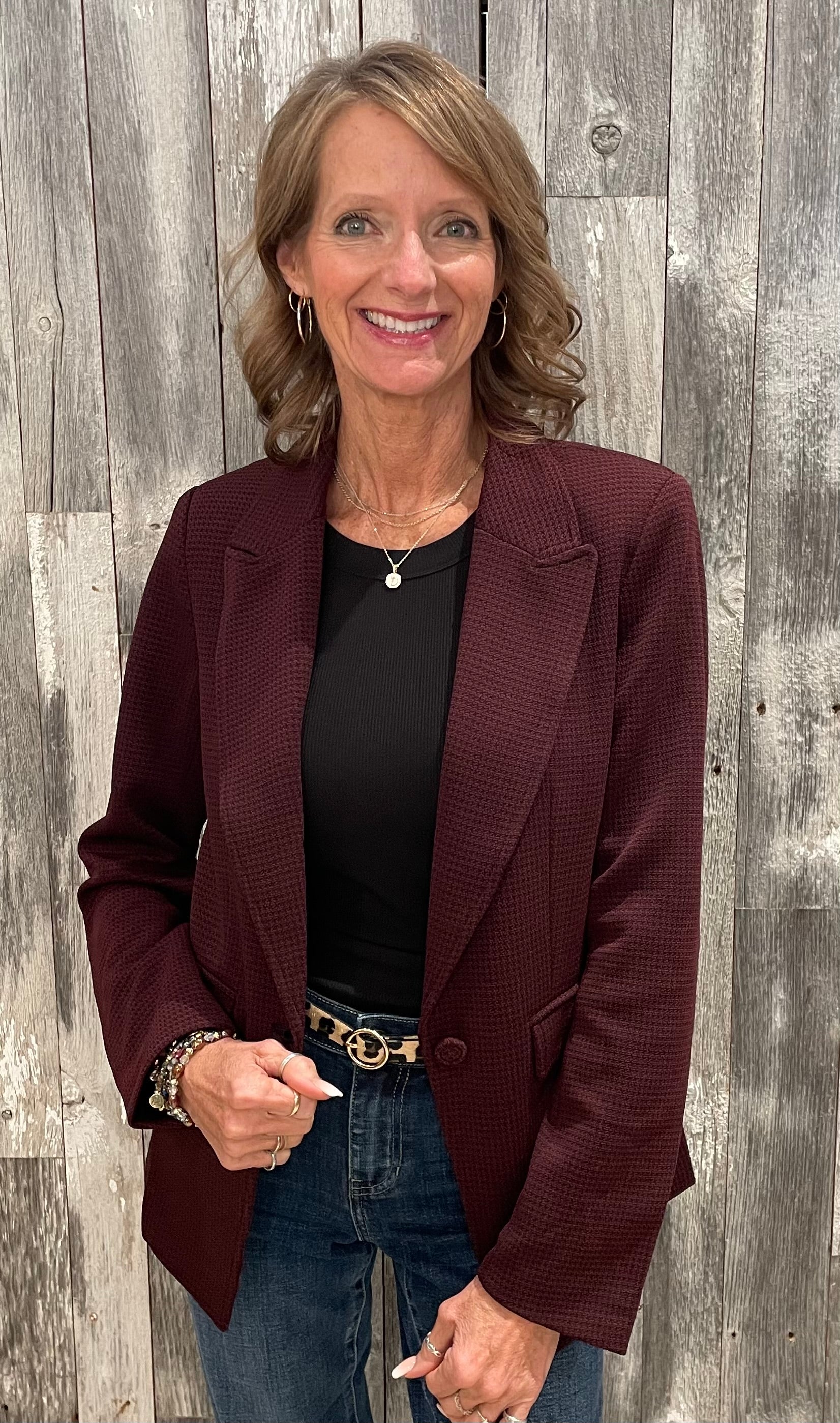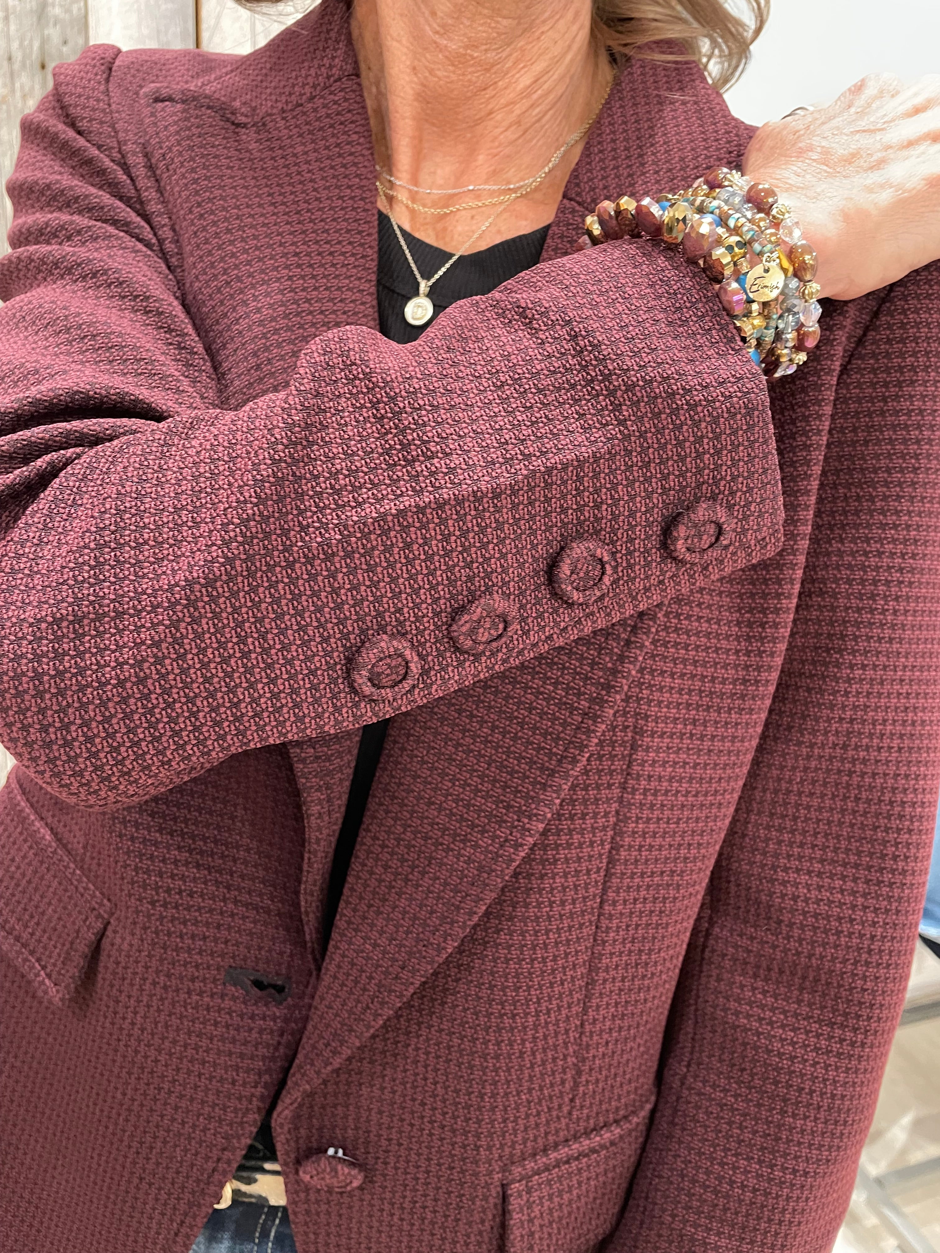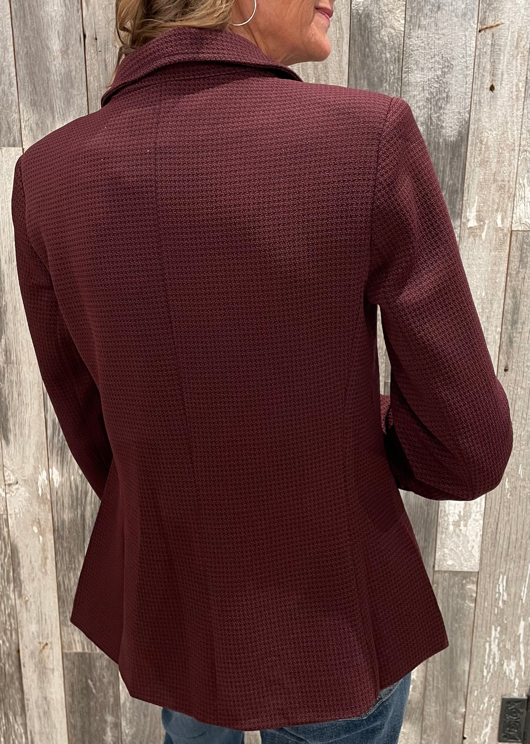 A timeless piece with a modern twist, this knit blazer elevates every outfit with ease. Featuring a notched collar, single-button closure, and structured shoulders, it’s the perfect blend of sharp tailoring and everyday comfort. Finished with buttoned sleeves and sleek flap pockets, it’s a wardrobe essential for work, weekends, and everything in between.