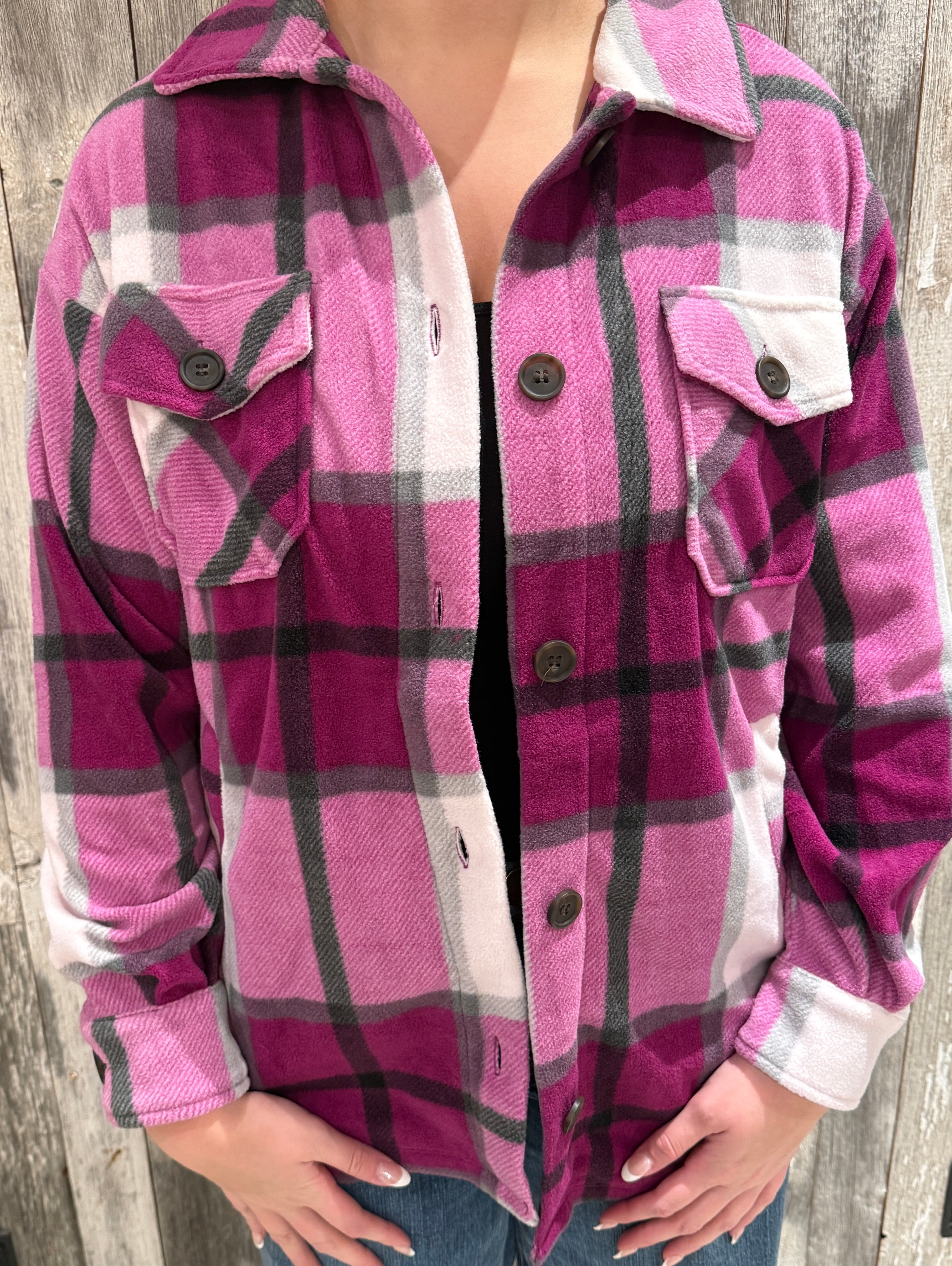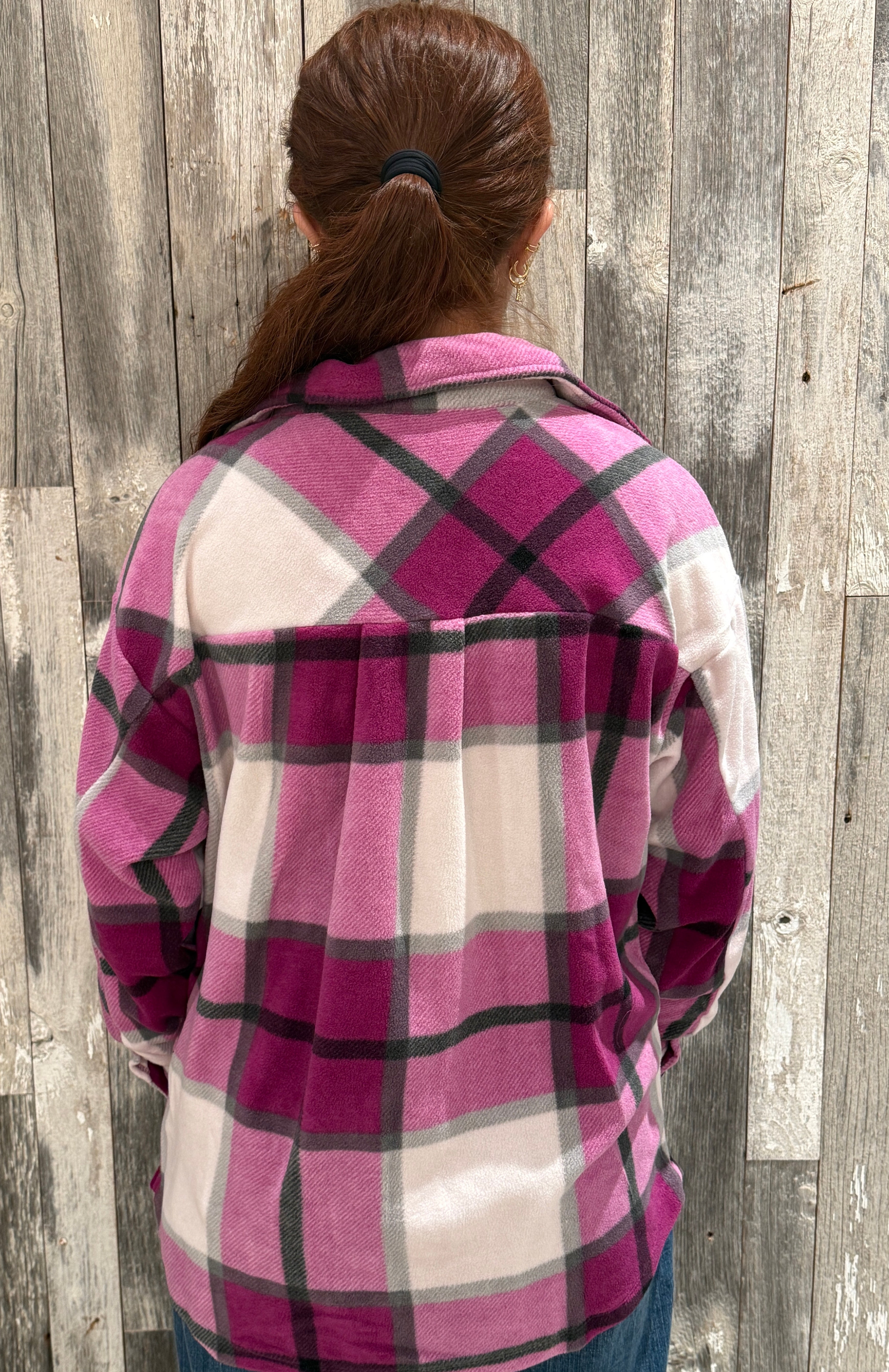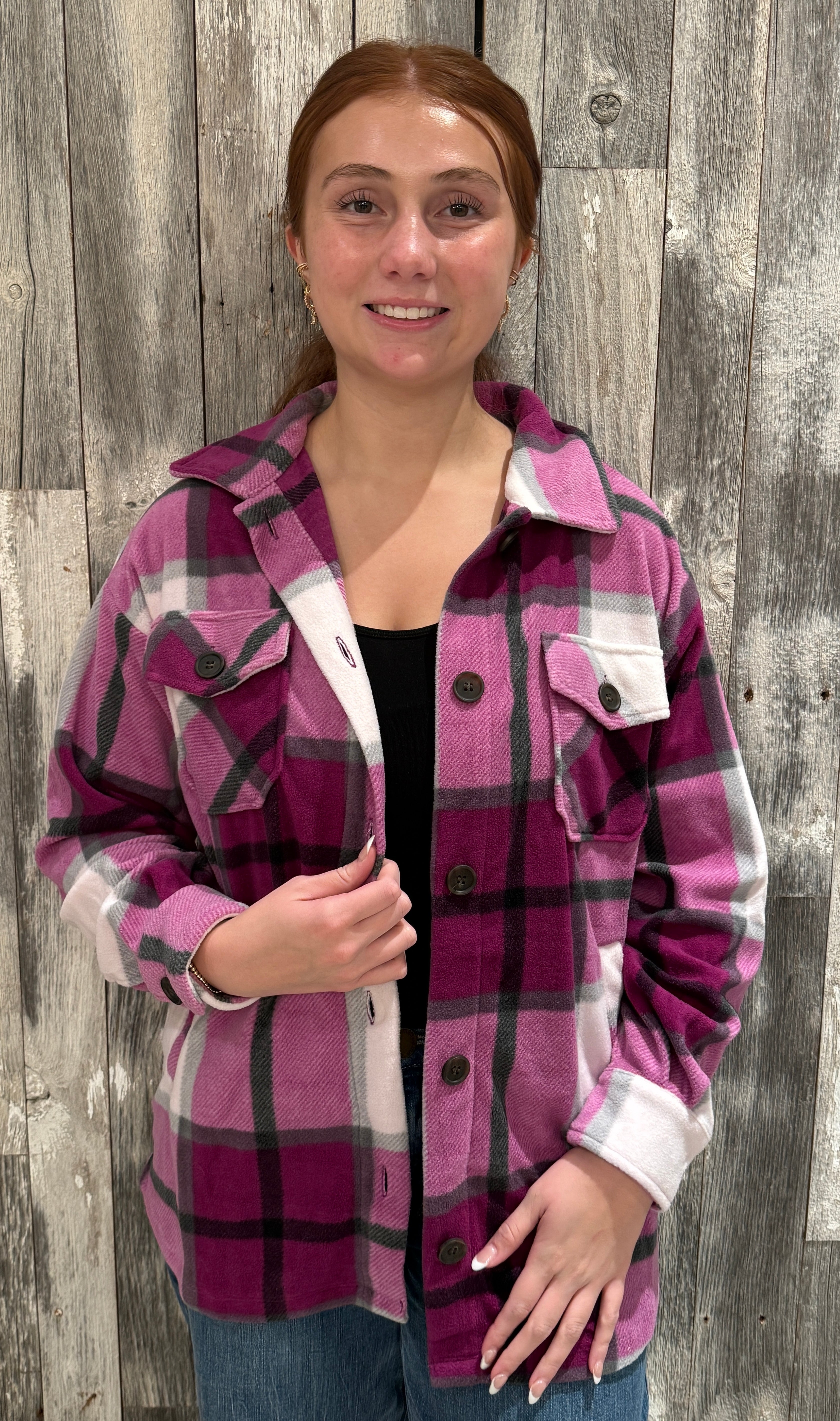 This oversized fleece plaid shacket is all about effortless layering and snuggly vibes. With perfectly aligned plaid lines, button cuffs, and roomy pockets, itās equal parts polished and cozy. Toss it on over denim or leggings for that ācasual but chicā look we love.