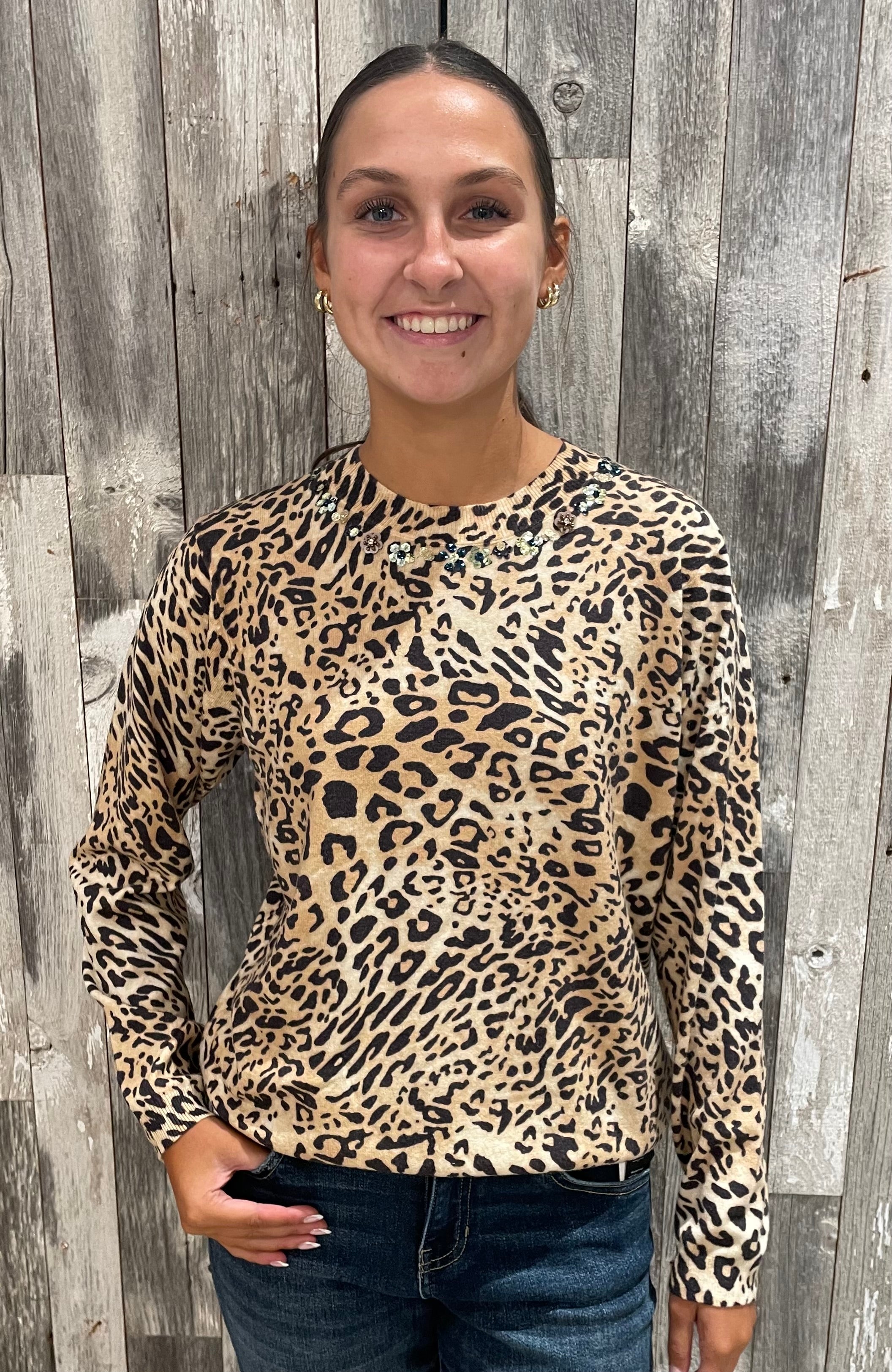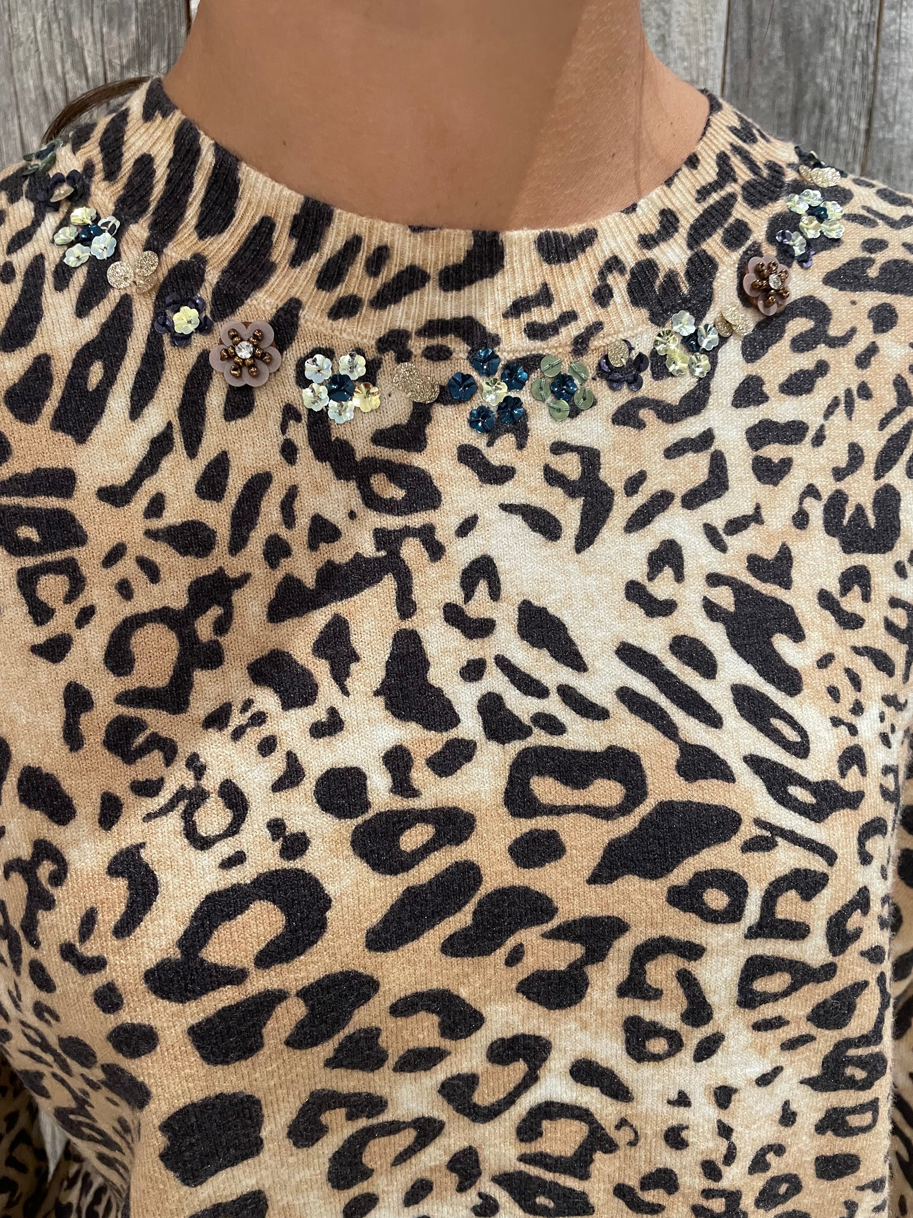 Leopard-print pullover sweater