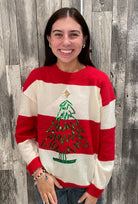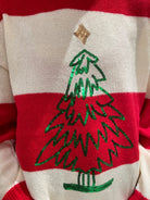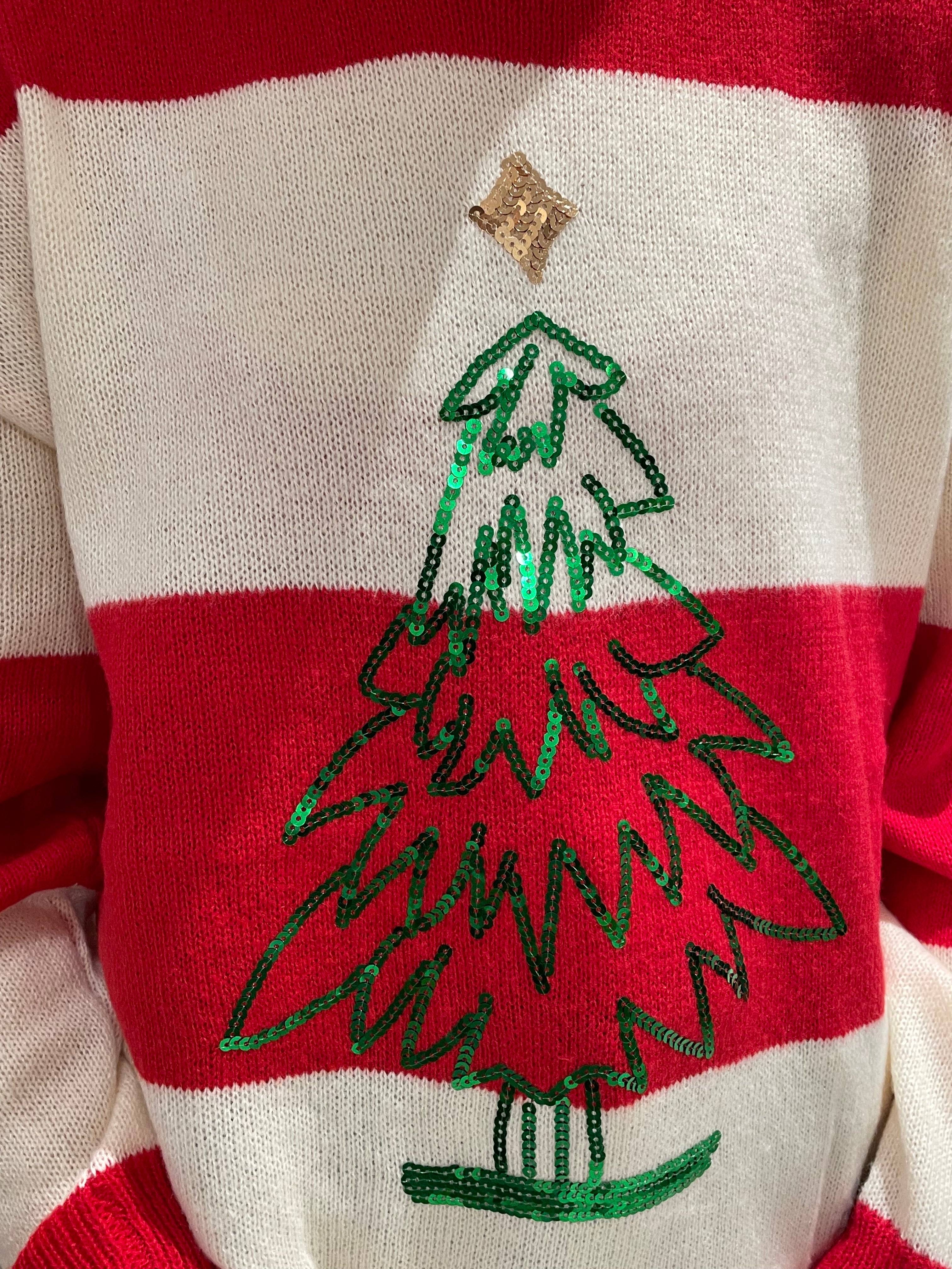 • Front showcases a large Christmas tree graphic made with sequin detailing