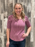 Ruched Elbow Sleeve Scoop Neck Top