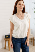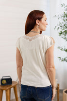 This soft knit top features a beautifully detailed lace-trimmed neckline that instantly elevates your everyday look. The relaxed silhouette and lightweight feel make it easy to wear, while the subtle cap sleeves add a flattering finish. Itās the perfect blend of feminine and casual.