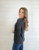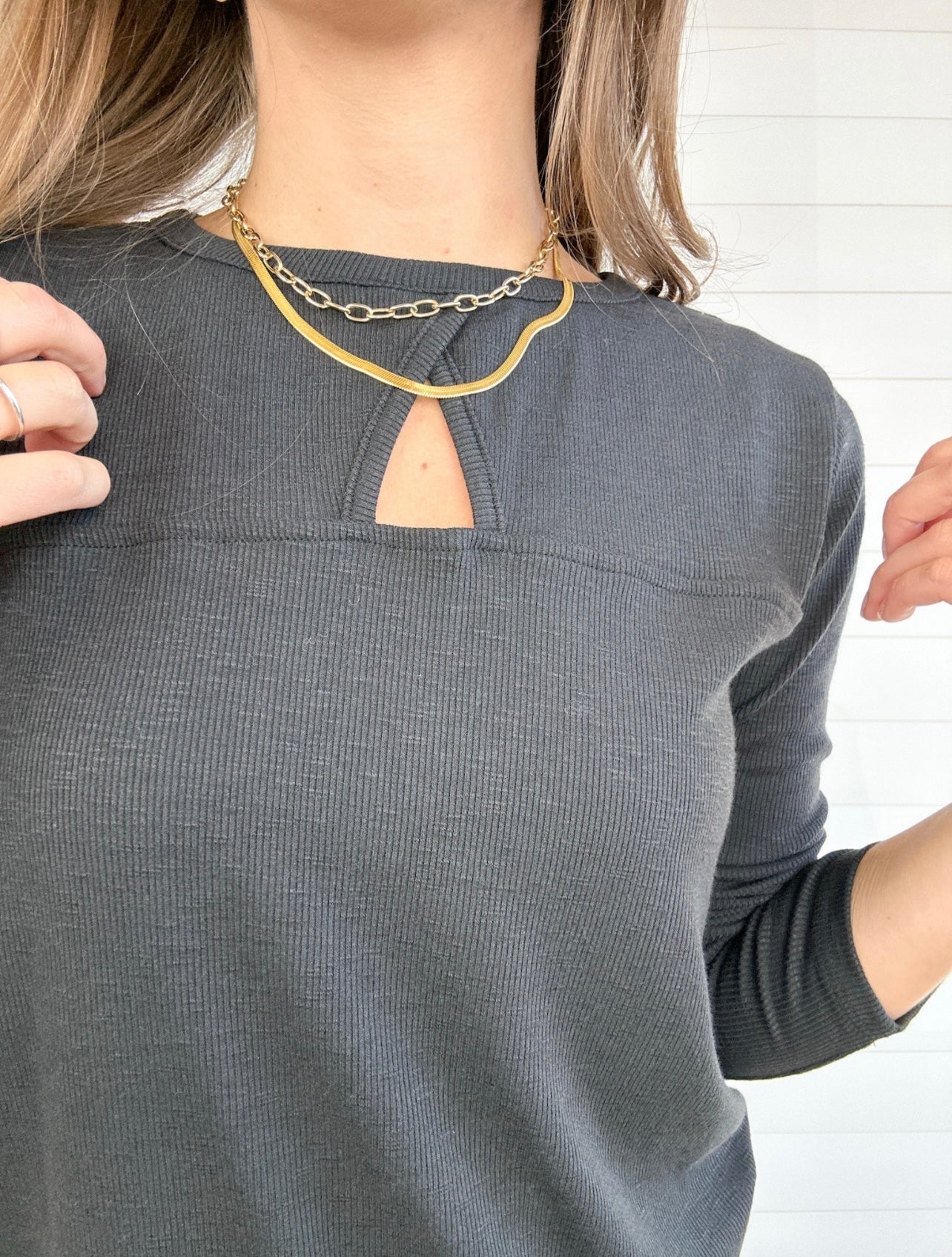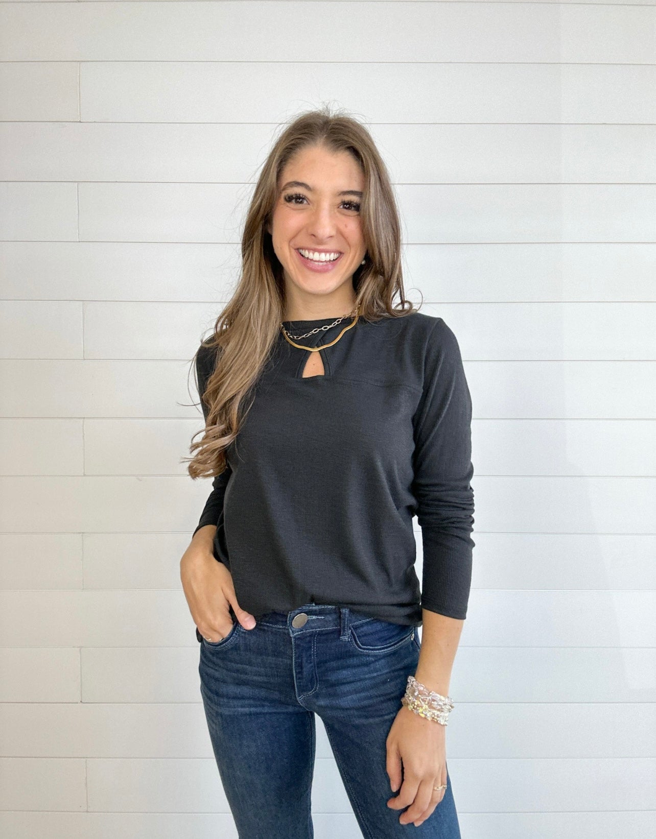 Elevate your everyday wardrobe with the Criss-Cross Keyhole Long Sleeve Top. Crafted from a soft, stretchy fabric, it features a subtle criss-cross detail at the neckline and a keyhole opening for a modern, feminine twist. Comfortable enough for all-day wear yet polished enough to dress up any outfit.