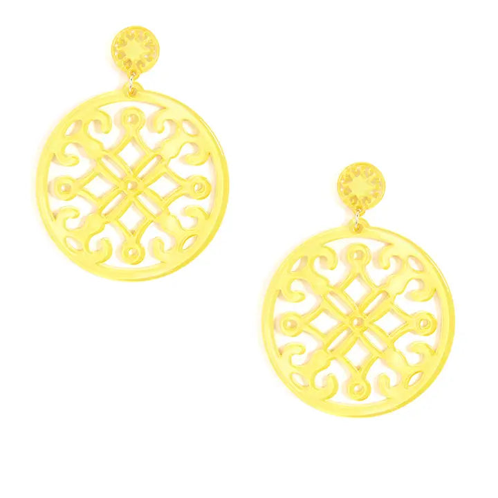 Premium-grade resin statement drop earring with cut-out design.