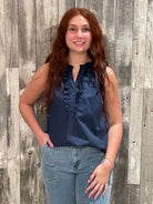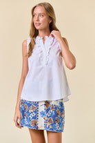 Cotton Poplin Split V-neck Ruffled Sleeveless Top