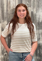 Crew Neck Short Sleeve Striped Pullover Sweater