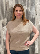 Drop Shoulder Sleeveless Mock Neck Sweater