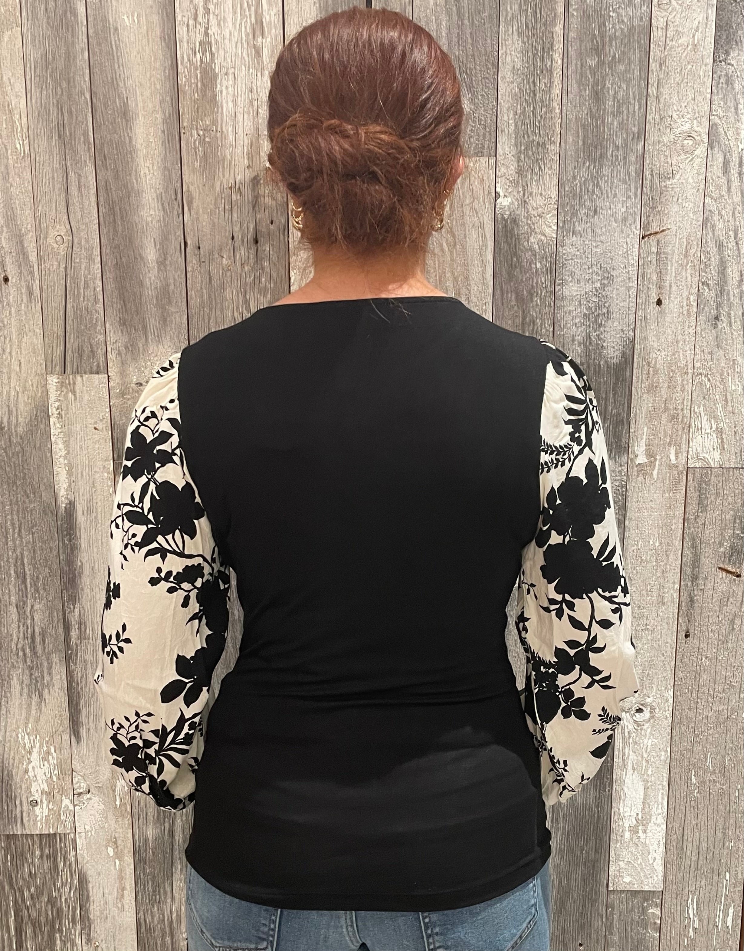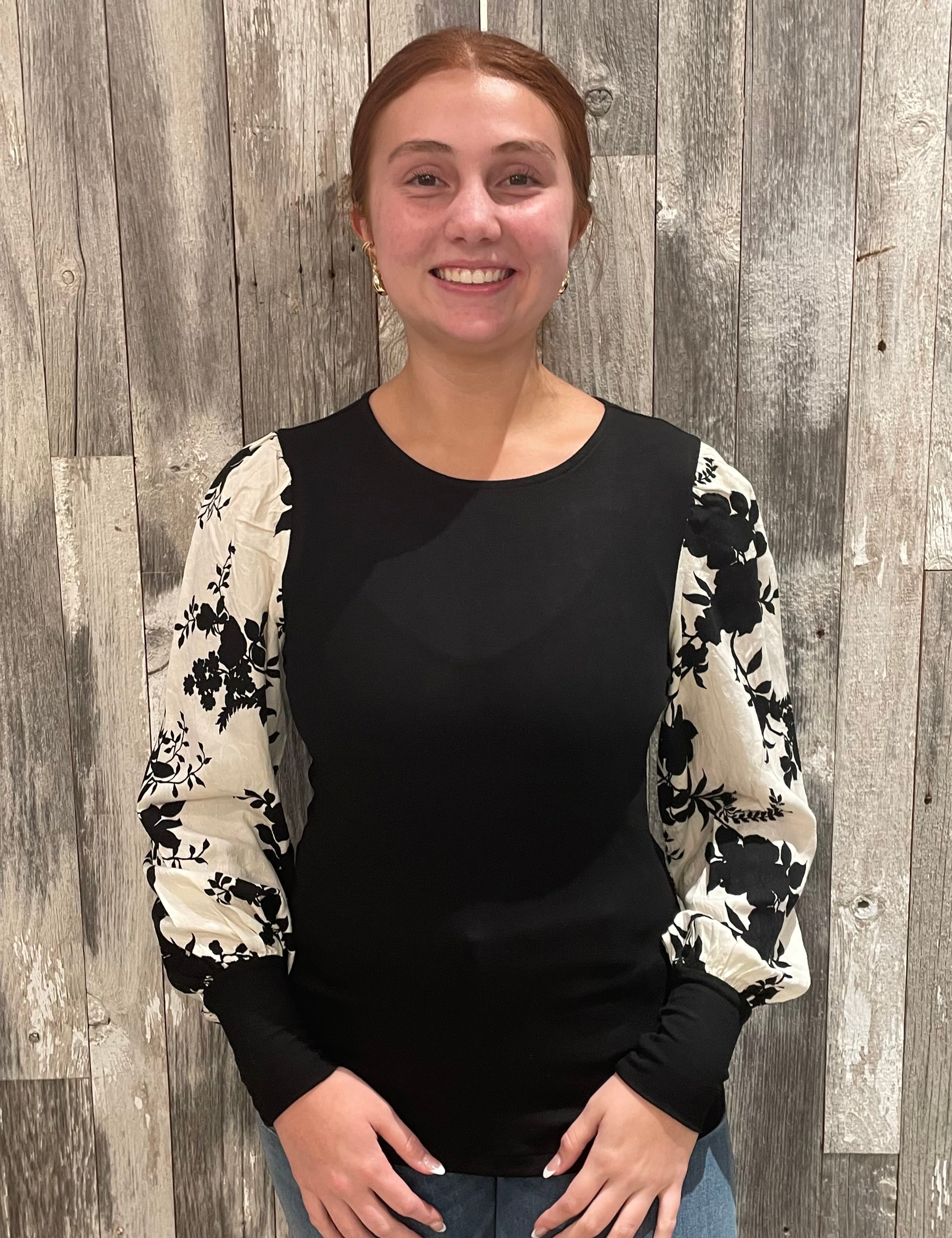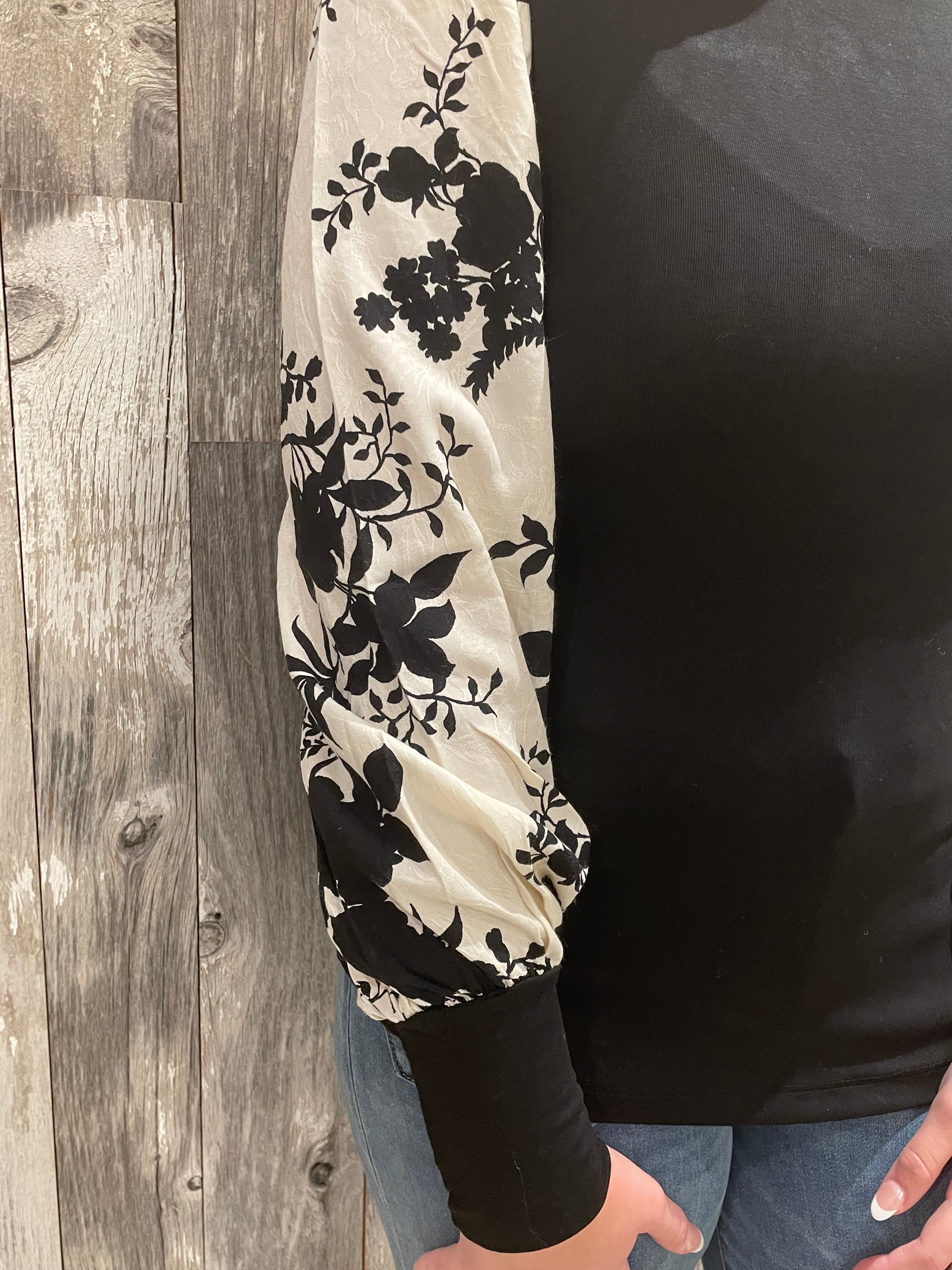 Floral Jacquard Contrast Sleeve Top