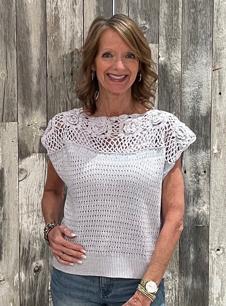 Floral Yoke Crochet Top