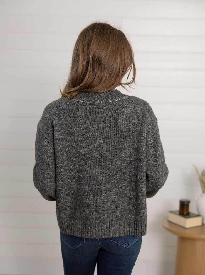 Fabric: Medium-weight knit, likely a cozy cotton or cotton-blend yarn