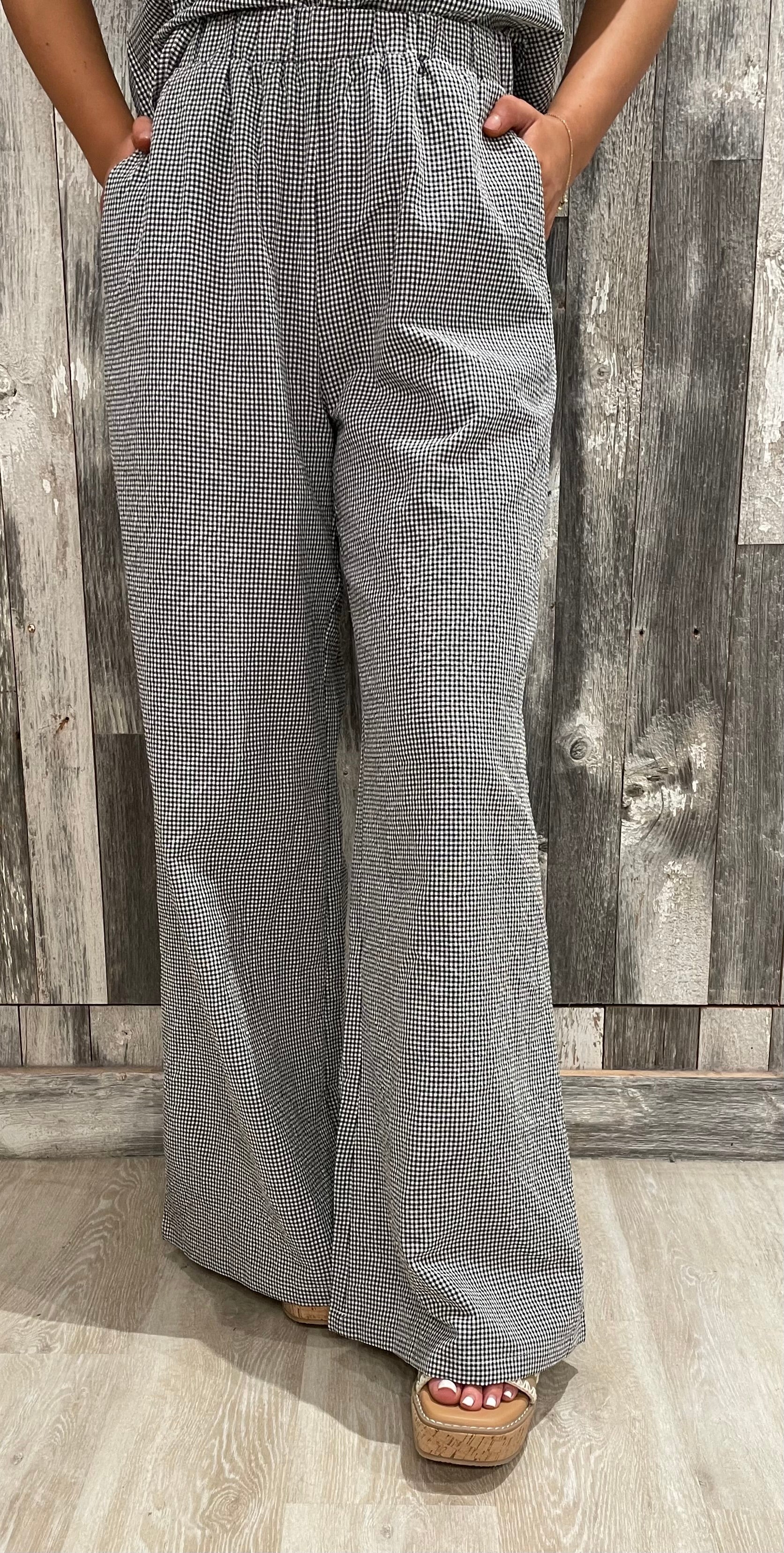 Gingham Seersucker Pull-On Pants