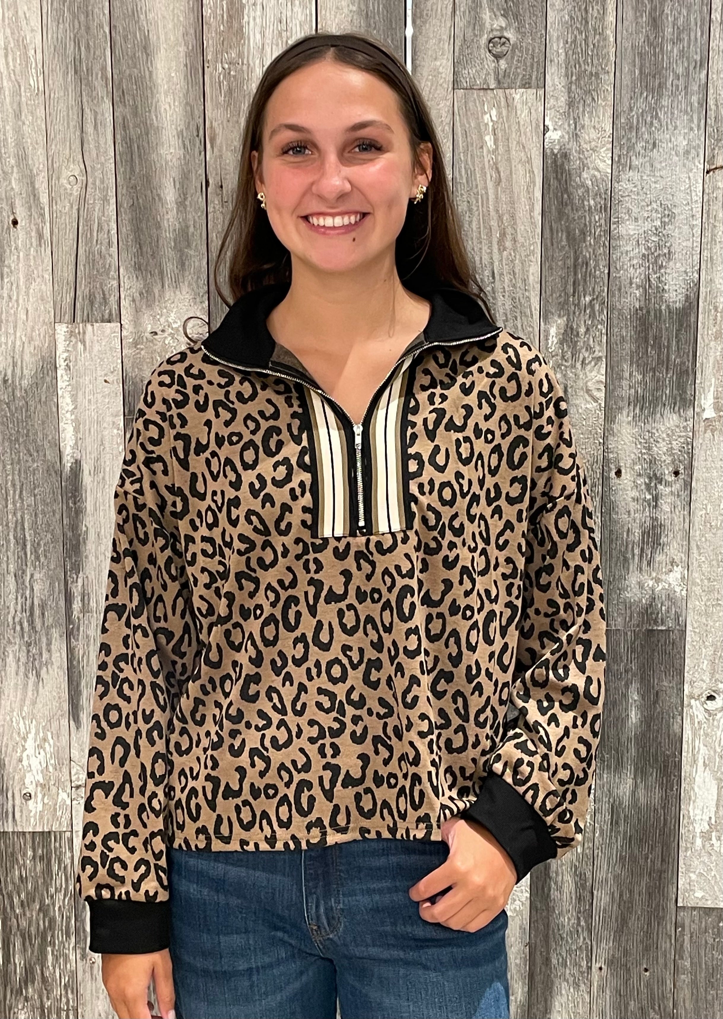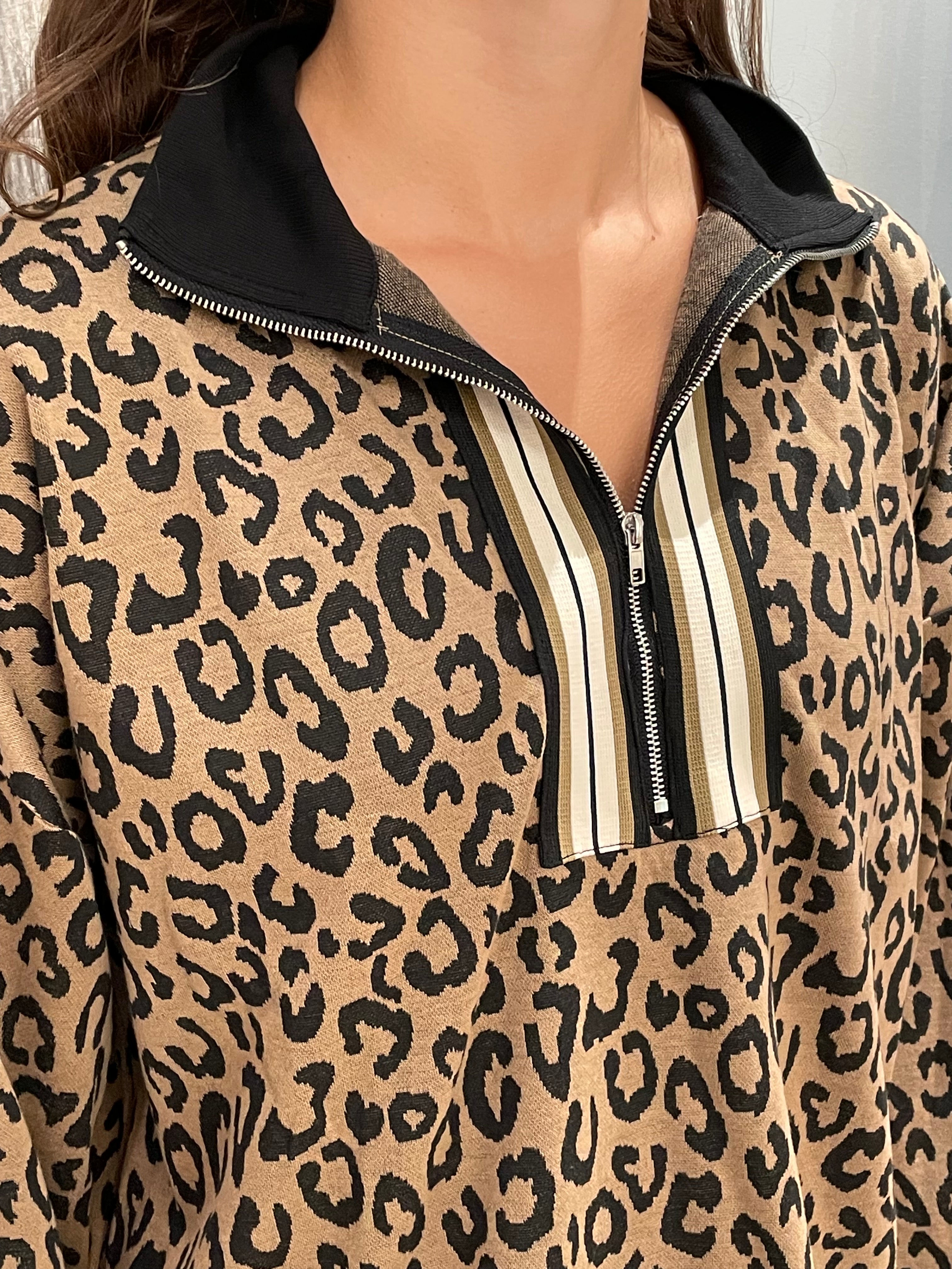 Half Zip Leopard Print Long Sleeve Top